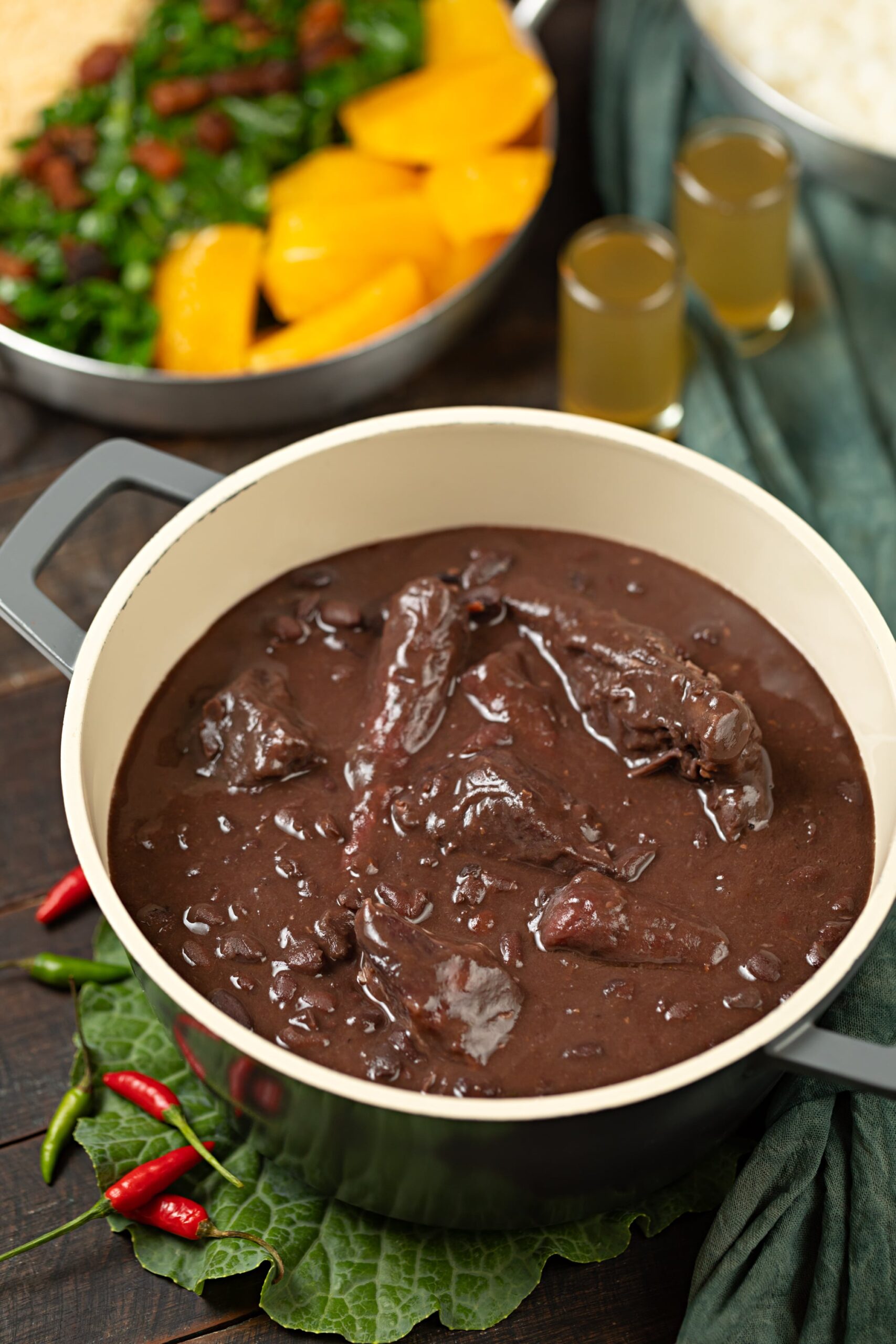 La FEIJOADA ACADÊMICA (30,50 u$s para 2 pers.) es un must aquí desde hace 40 años. Premiada más de una vez, se hace en sartén con cortes de cecina, costillas, lomo, salchicha y longaniza, acompañada de arroz, col rizada, tocino, farofa, rodajas de naranja y la emblemática “miel”.