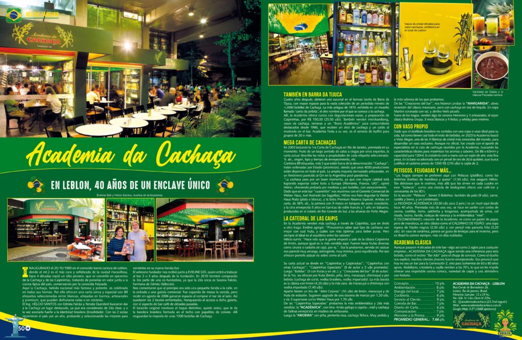 Inaugurada el 25/10/1985 en el conocido barrio carioca de Leblon, donde el mt.2 es el más caro y sofisticado de la ciudad maravillosa, hace 4 décadas nació un sitio pionero, que se convirtió en epicentro de la Cachaça y de las Caipirinhas, tratando de ponerlas en valor junto a la cocina típica del país, comenzando por la conocida Feijoada.
