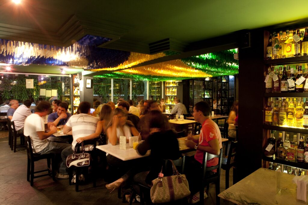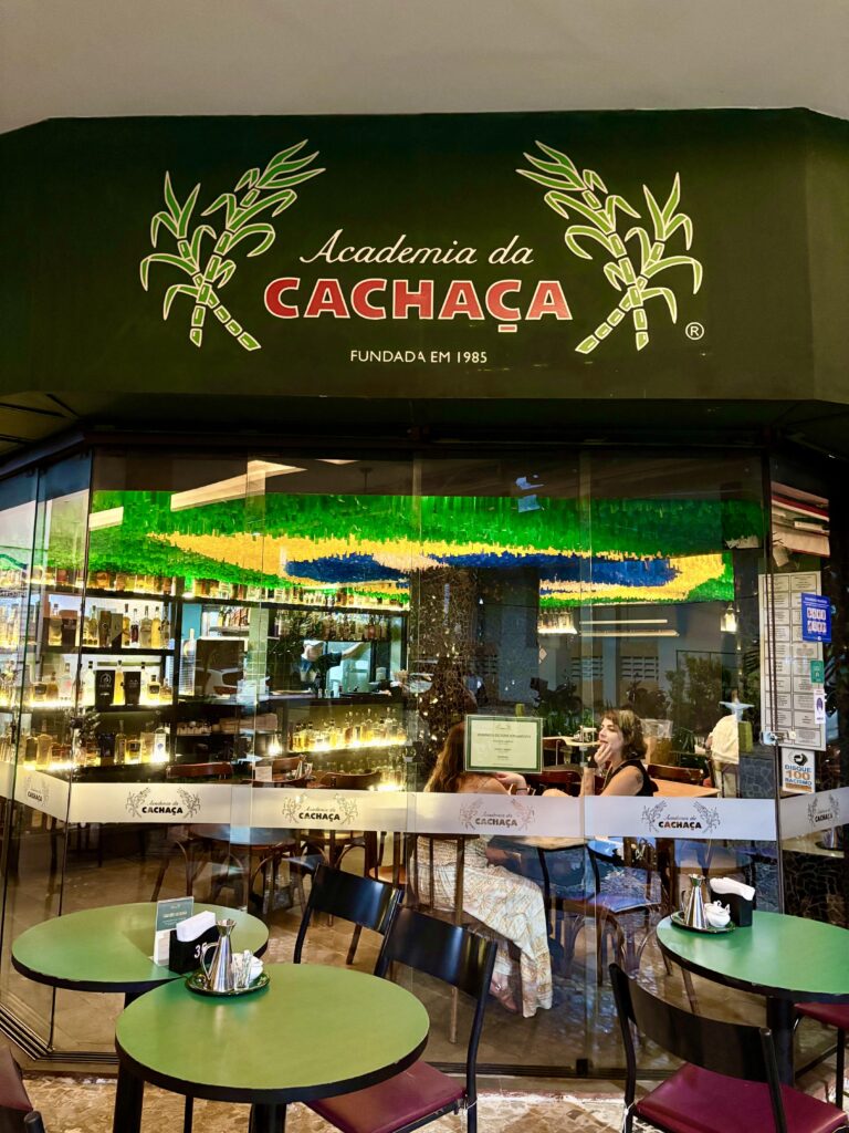 Aunque pasaron 4 décadas de este bar –algo así como 2 siglos para cualquier empresa-, ACADEMIA DA CACHAÇA sigue siendo una referencia para esta bebida, como el vecino “Bar Jobi” para el chopp de cerveza. Como el dueño nos explicó, muchos clientes jóvenes fueron envejeciendo. Eso provocó que hoy no sea un bar para la Generación Z, sino para bohemios de 60 a 80 años aprox. Mobiliario, cristalería y vajilla remiten a los 70’s, lo que no les impide ofrecer una respetable cocina carioca, variedad de caipis y una atmósfera con historia.