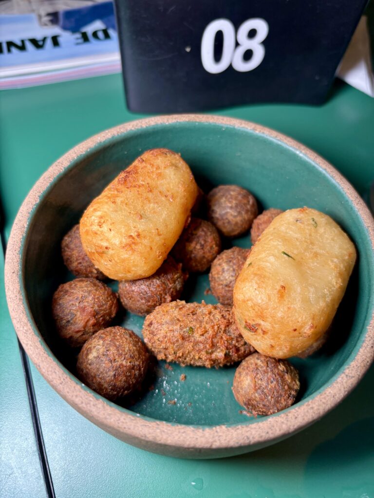 “Los tragos siempre se prefieren aquí con Petiscos (platillos), como los Bolinhos (bolitas) de mandioca y queso” (7,50 u$s), nos aseguró Hélcio. Tan deliciosos que le creímos, más allá que los sirven en cada cuadra en esos “botecos”, como una mezcla de bodegones chicos con café-bar y cervecerías de los 80’s.