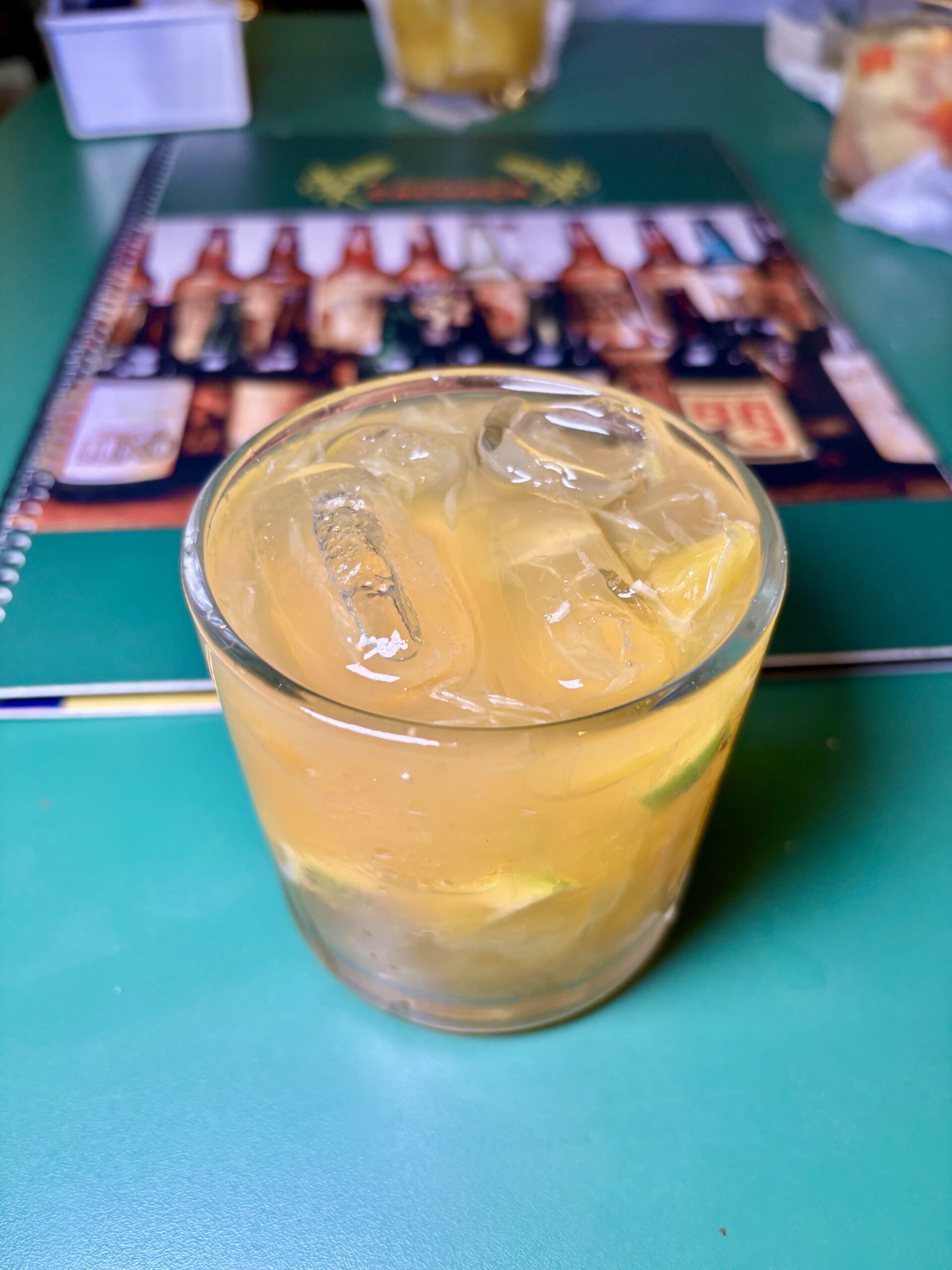 De las “Caipirinhas Especiales” probamos la más emblemática y 2da más vendida: la “ACADÊMICA”, con lima -limão galego o capeta-, miel y cachaça de Salinas envejecida en madera de amburana.