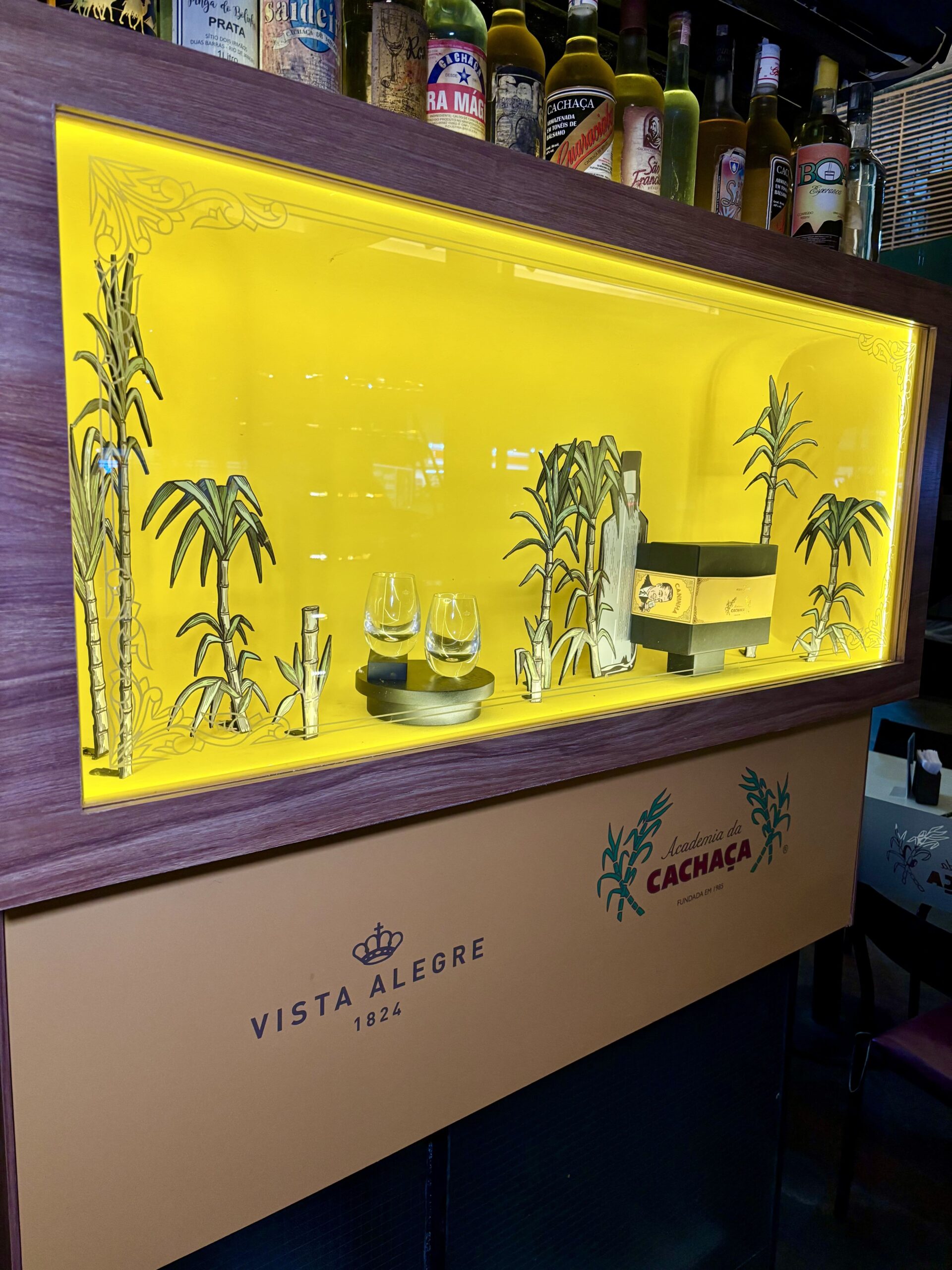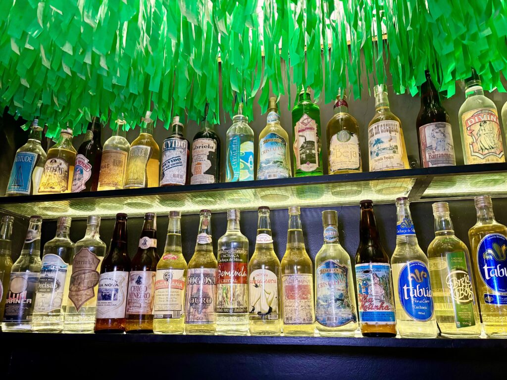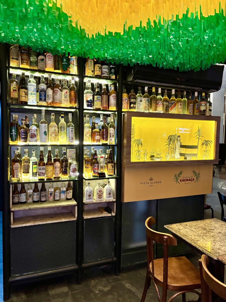 Cuatro años después, abrieron una sucursal en el famoso barrio de Barra da Tijuca, con mayor espacio para la vasta colección de un periodista mineiro de +2000 botellas de Cachaça. La más antigua de 1870, exhibida en un museíto llamado ‘canto da jeribita’, el otro nombre por el que se conoce a la cachaça.