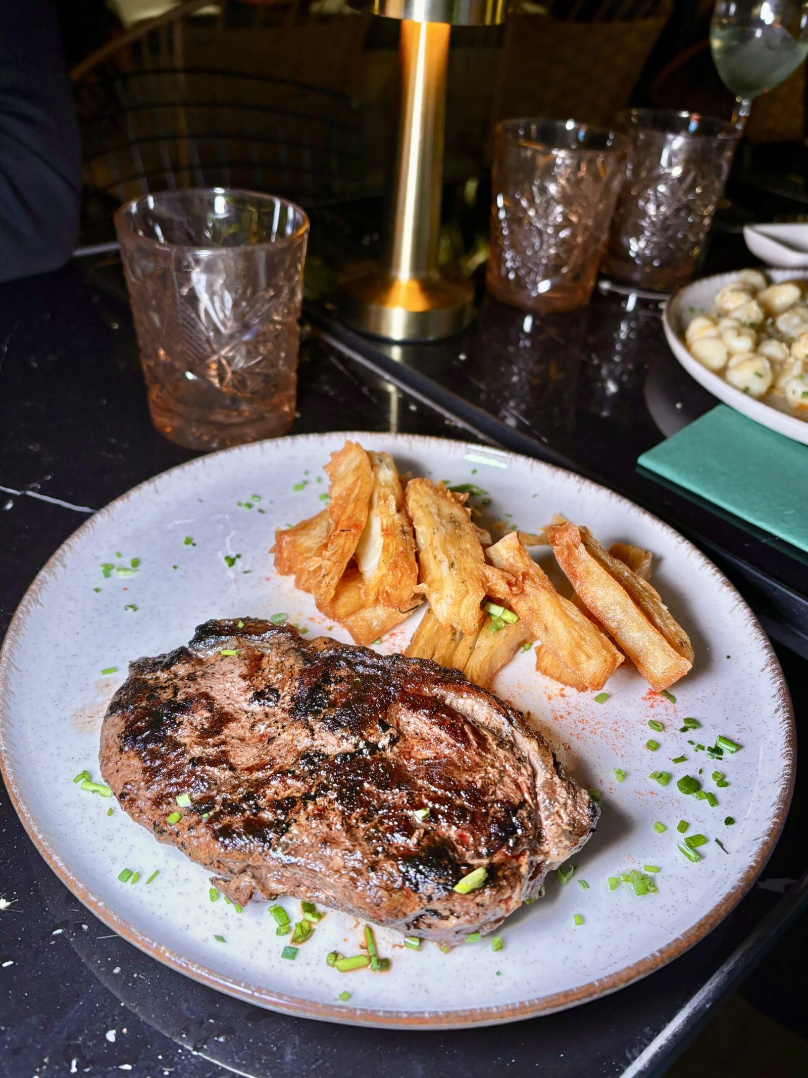 BIFE DE CHORIZO de 400 grs con papas pavé. ($arg.17.900).