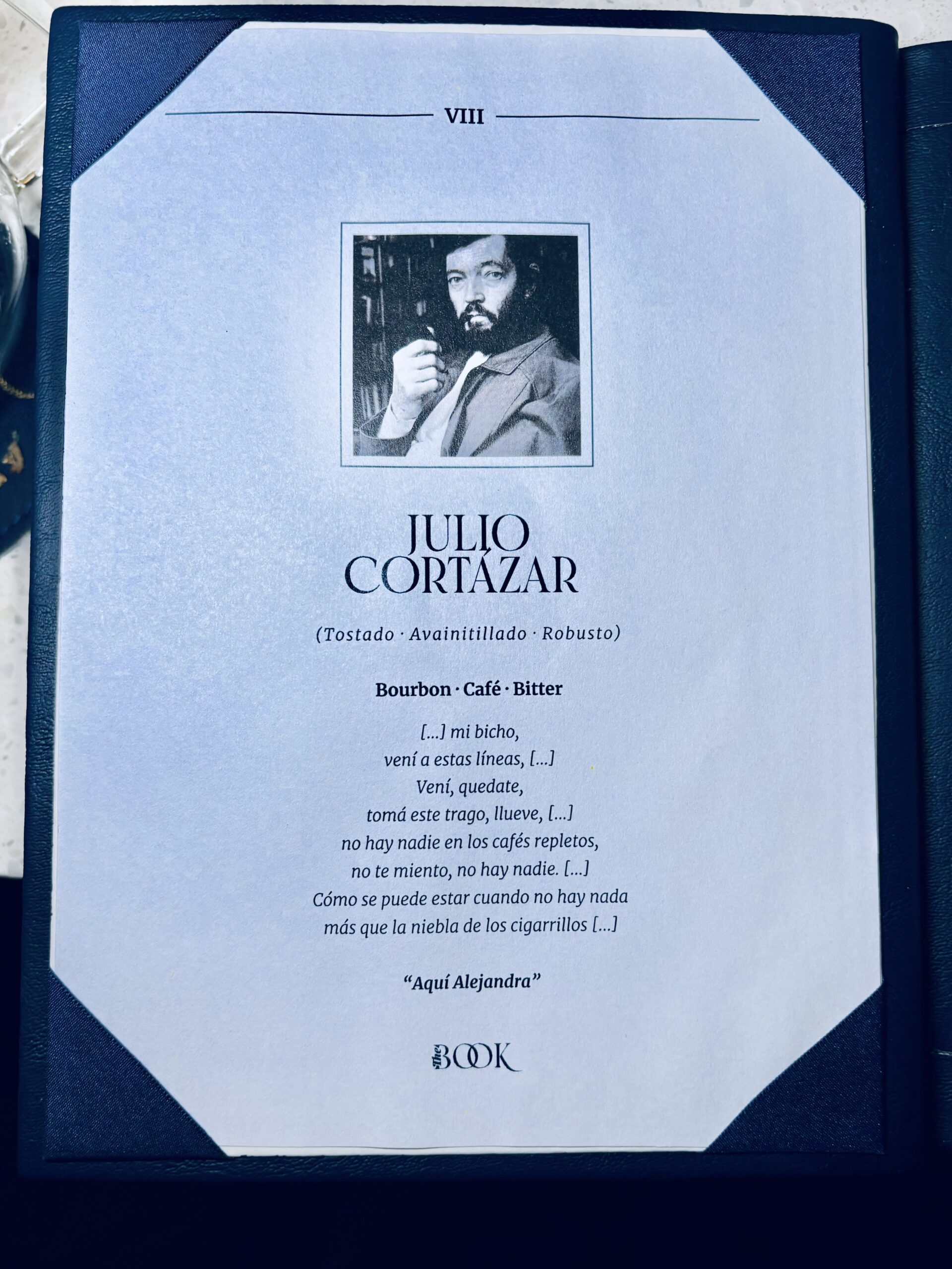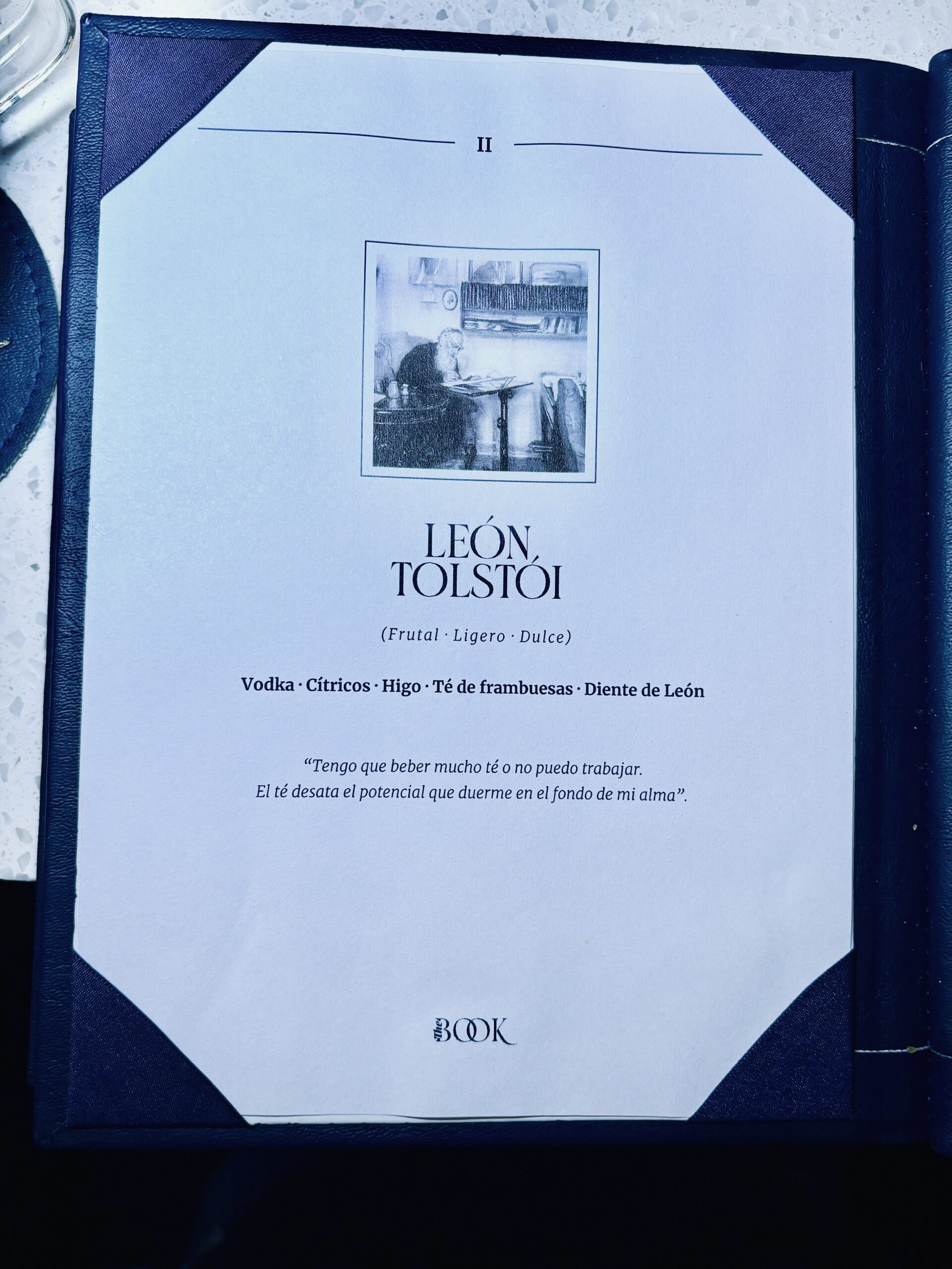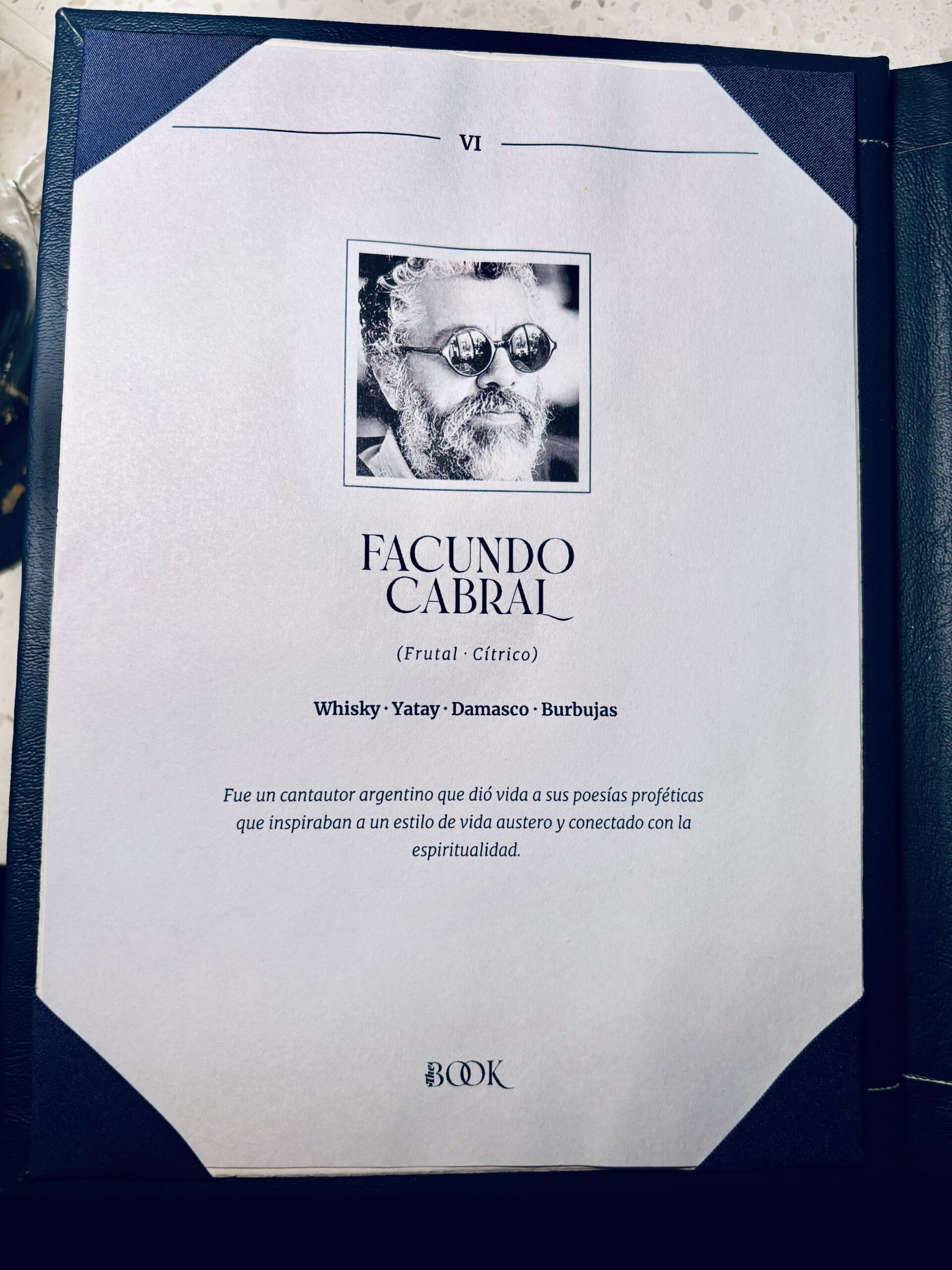 De las mejores cartas impresas que hayamos visto en Argentina y la región, The Book presenta un libro literalmente y como se podría esperar dado el concepto del lugar. Algo que parece de un bar neoyorquino y que reafirma la importancia de que los bares utilicen cartas impresas, donde expresar una fuerte identidad propia y conceptual a través del diseño y la información que contenga. Muchos beneficios que la era digital no trae aun aparejada, que a la vez justamente empareja a todos los bares que solo quieren tener un QR.