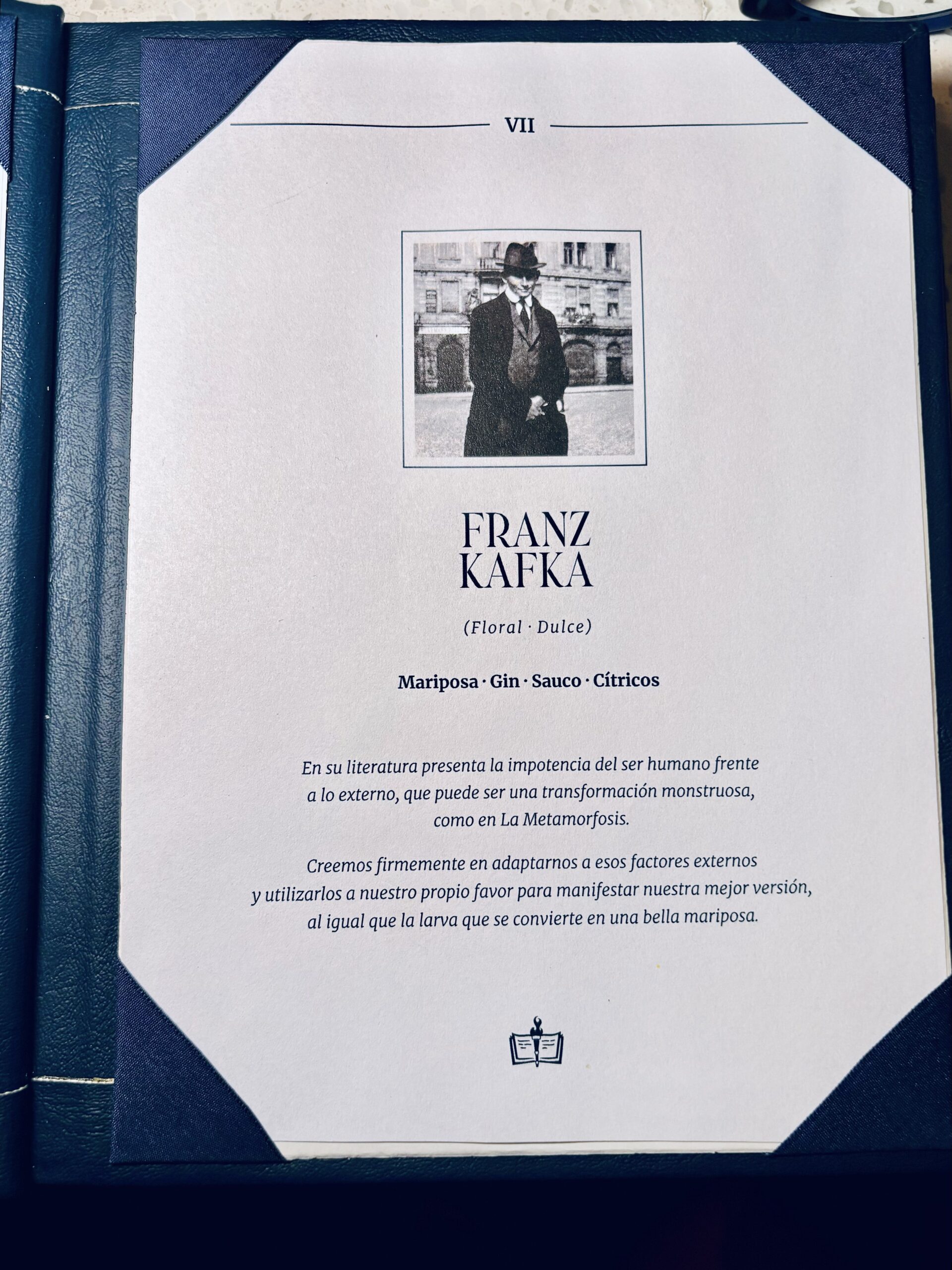 “Esto es un libro abierto con ciertos personajes históricos que elegimos –mis favoritos-, pero el fin es que el público se acerque a la cultura general desde lo lúdico como venir a tomar algo rico. Por ej. el FRANZ KAFKA que escribió ‘La Metamorfosis” viene con una mariposa de garnish. O FACUNDO CABRAL, viene con un espejo donde podés leer una frase suya mirándolo… Cada coctel tiene una temática y guiños a descubrir relacionados al personaje”, continuó explicando la bartender creadora.