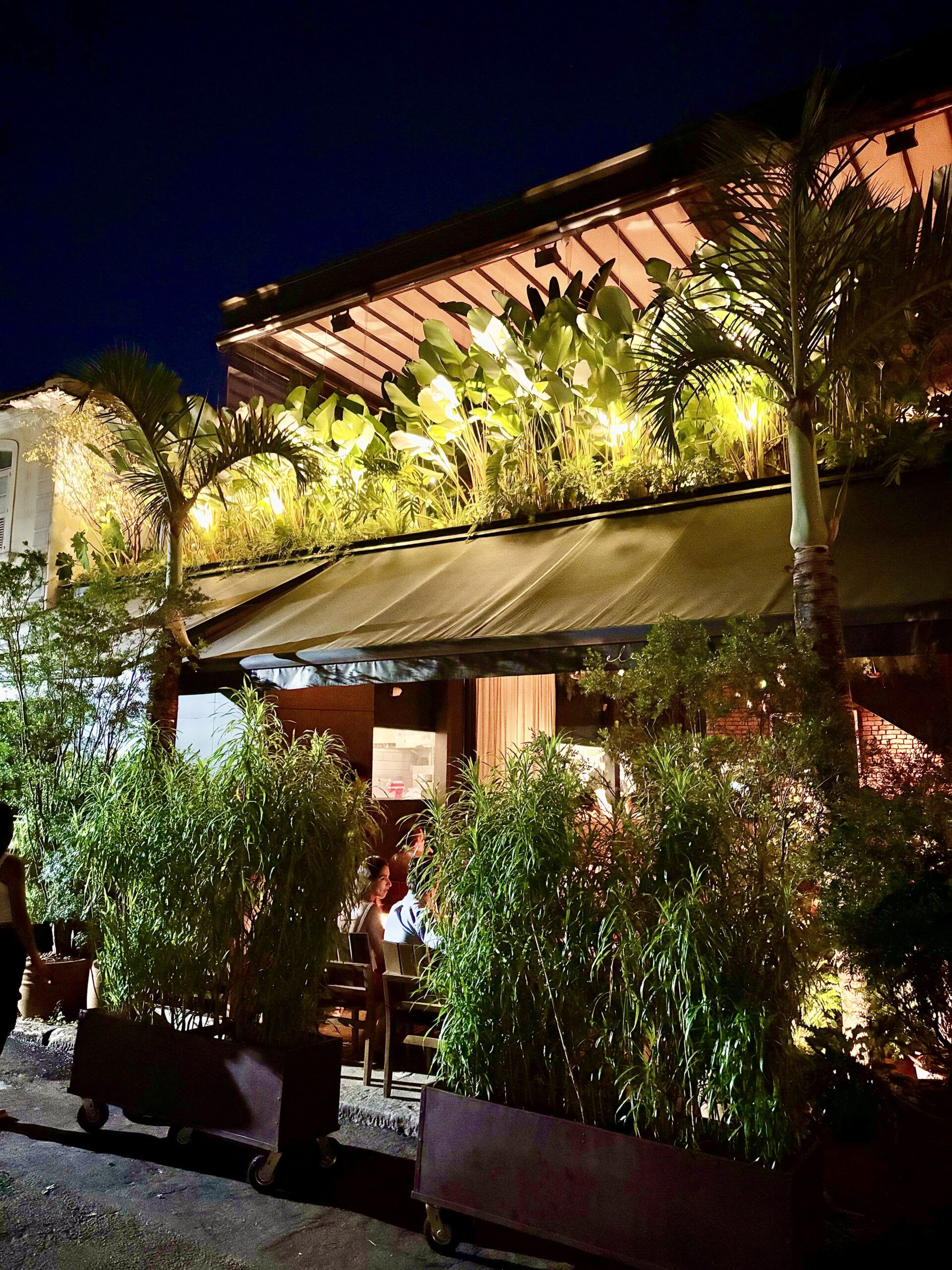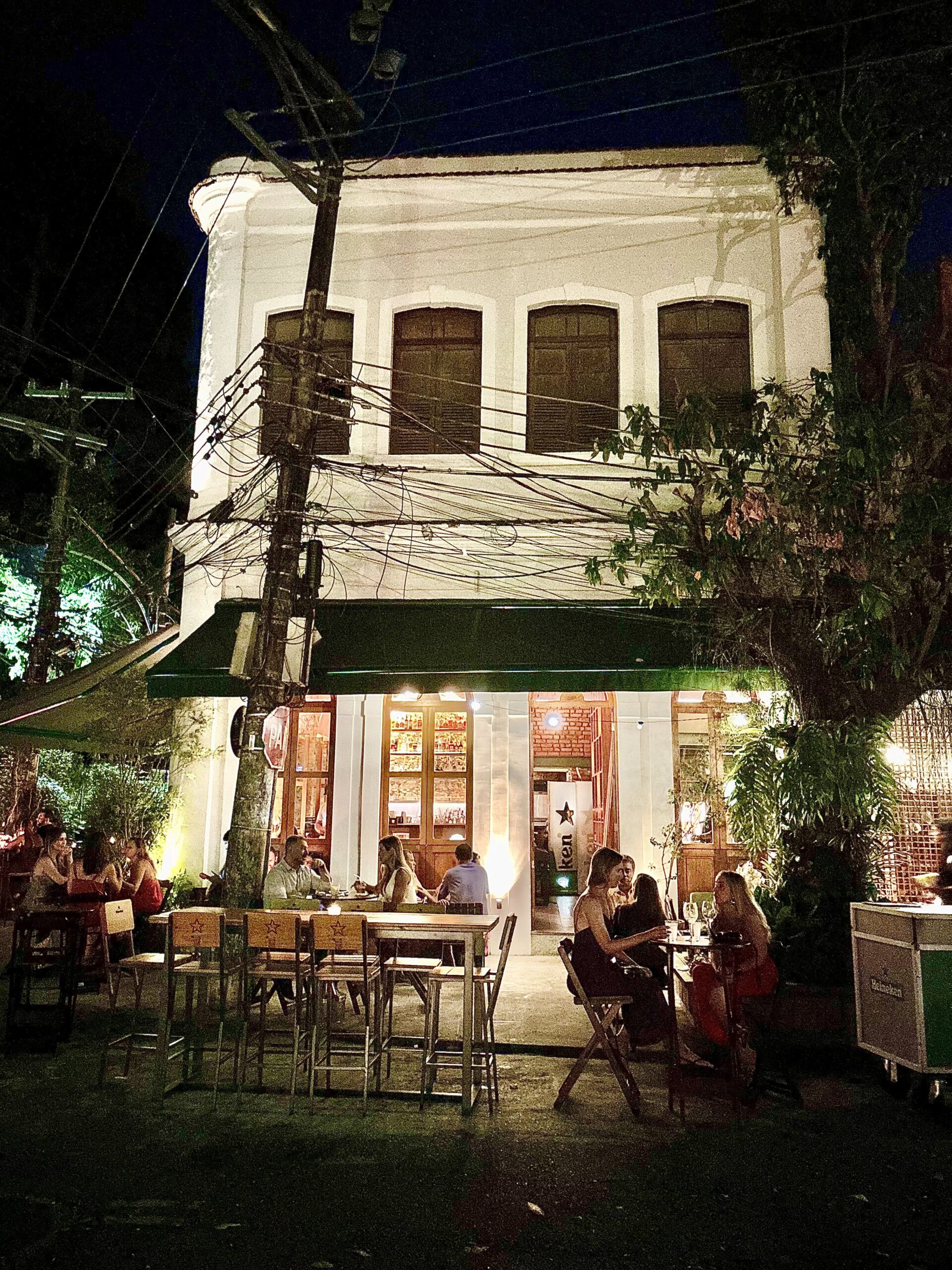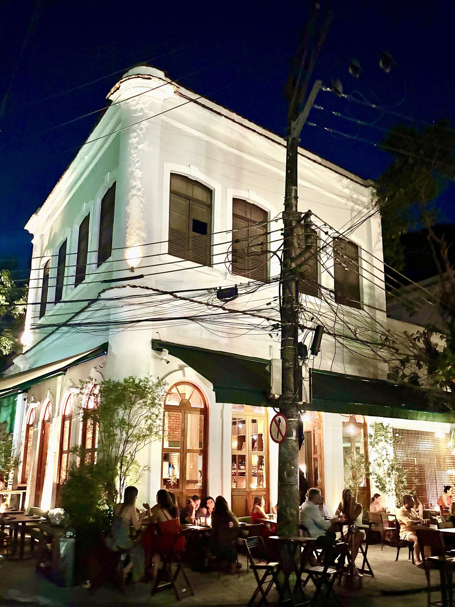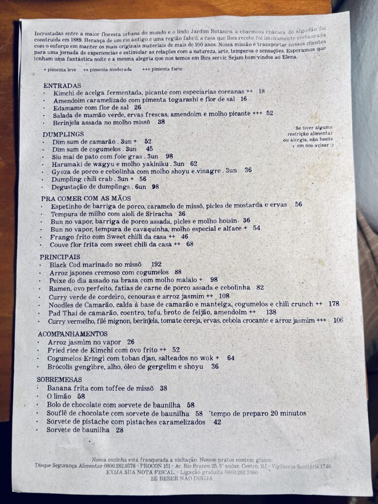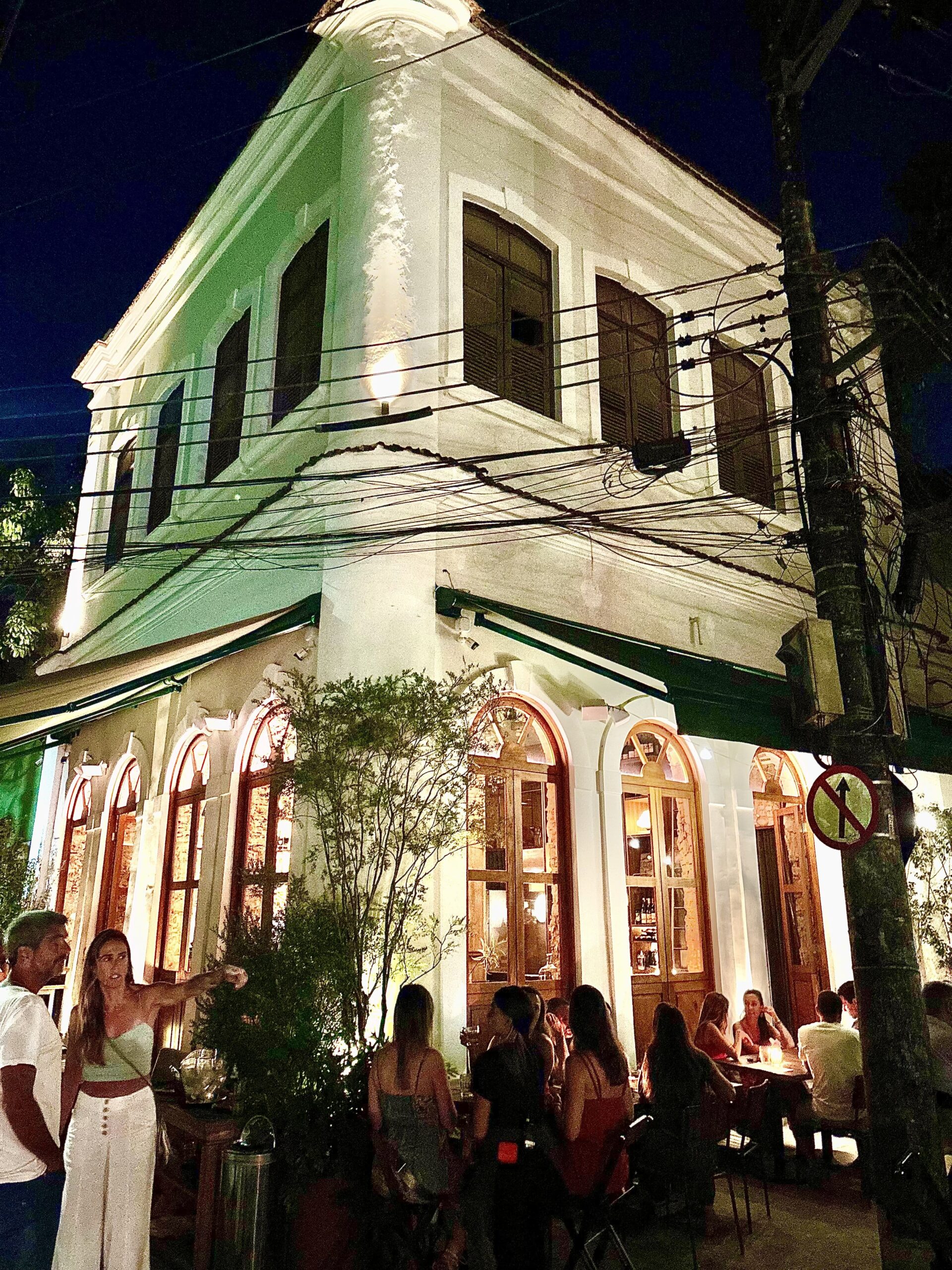 Allí en un caserón colonial de 2 plantas con fachada blanca, sobre una esquina frente al inmenso parque Botánico, donde había un resto japonés, Elena abrió en 2022 para posicionarse como un must de la “cidade”. La antigua casona era parte del complejo histórico “Chácara do Algodão”, que fuera vivienda para trabajadores de una gran fábrica textil. El estudio del Arq. Thiago Bernardes restauró la fachada histórica con la validación del Instituto Rio Patrimônio da Humanidade.