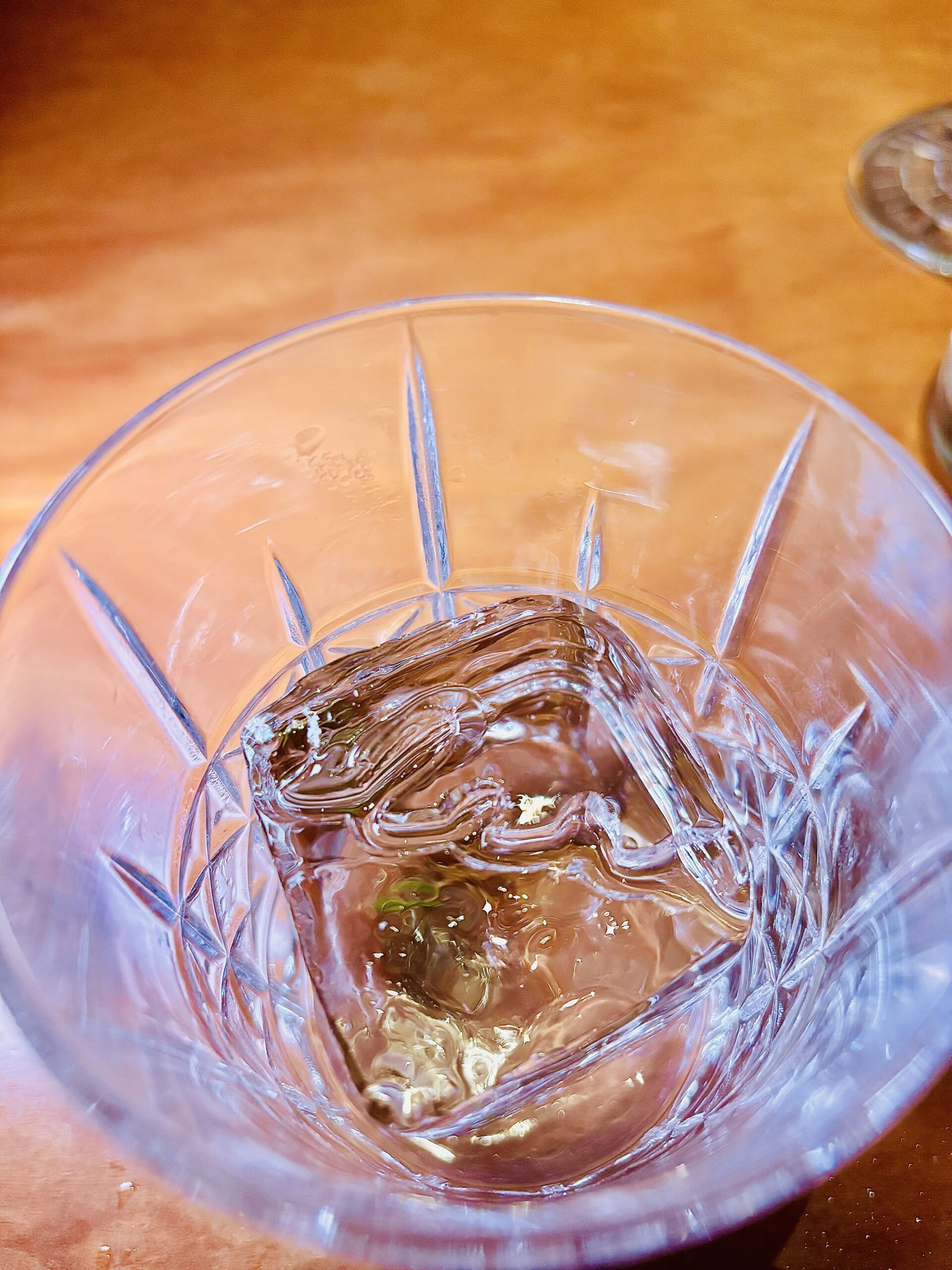 -DEJA VU (58 R$) con whisky de malta, pisco, syrup de salvia y pepino, jugo de piña y limón Tahití, en vaso Old Fashioned de 150ml