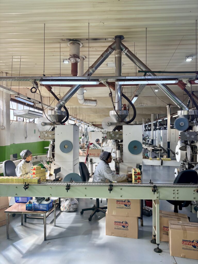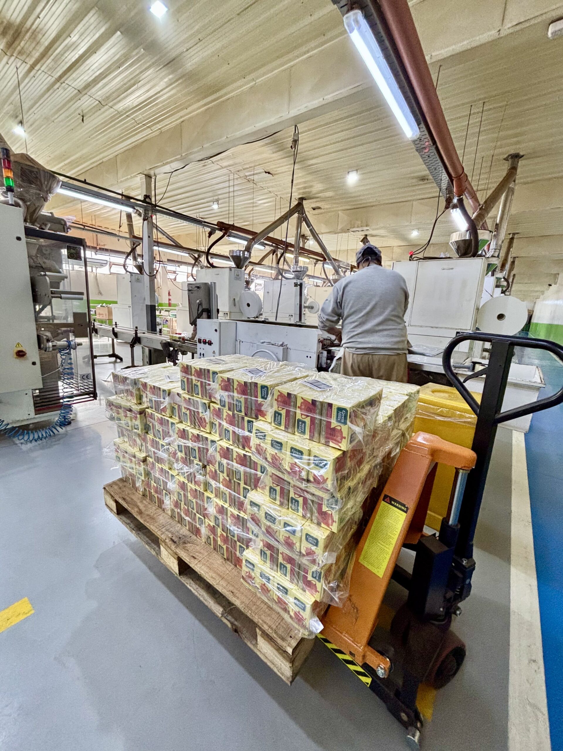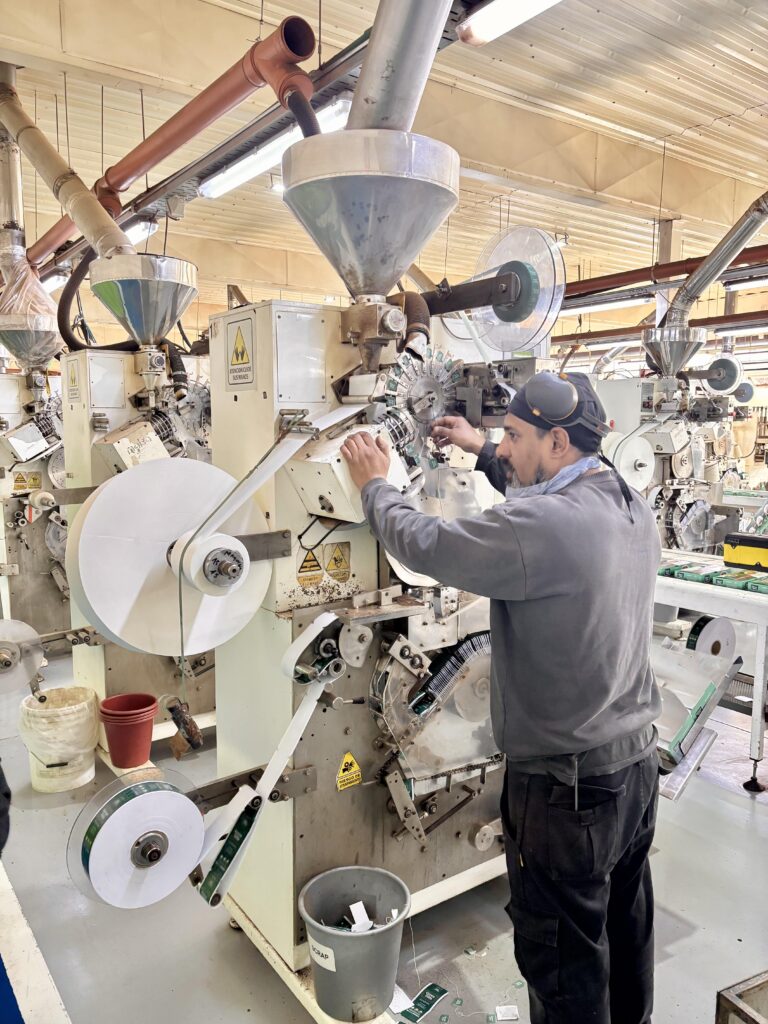 En tanto, en esta planta principal de Escobar, en 2025 invertimos unos 2,5 millones de dólares en máquinas de alta velocidad de envoltorios de tés y mate cocido. Renovamos así maquinaria del año 2000, con una tecnología muchísimo más avanzada, aumentando la productividad en un 40% -agregando un 3er turno-, a más del doble de velocidad, y permitiendo mayor versatilidad de productos en saquitos, incluso para lotes no tan enormes.
