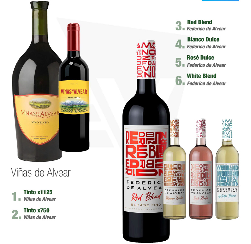 / FEDERICO DE ALVEAR (espumantes en $4500 promedio pero calidad del segmento superior, Nro.1 en ventas por volumen, con 900mil cajas de 12 bot./ año si se suma Toso).