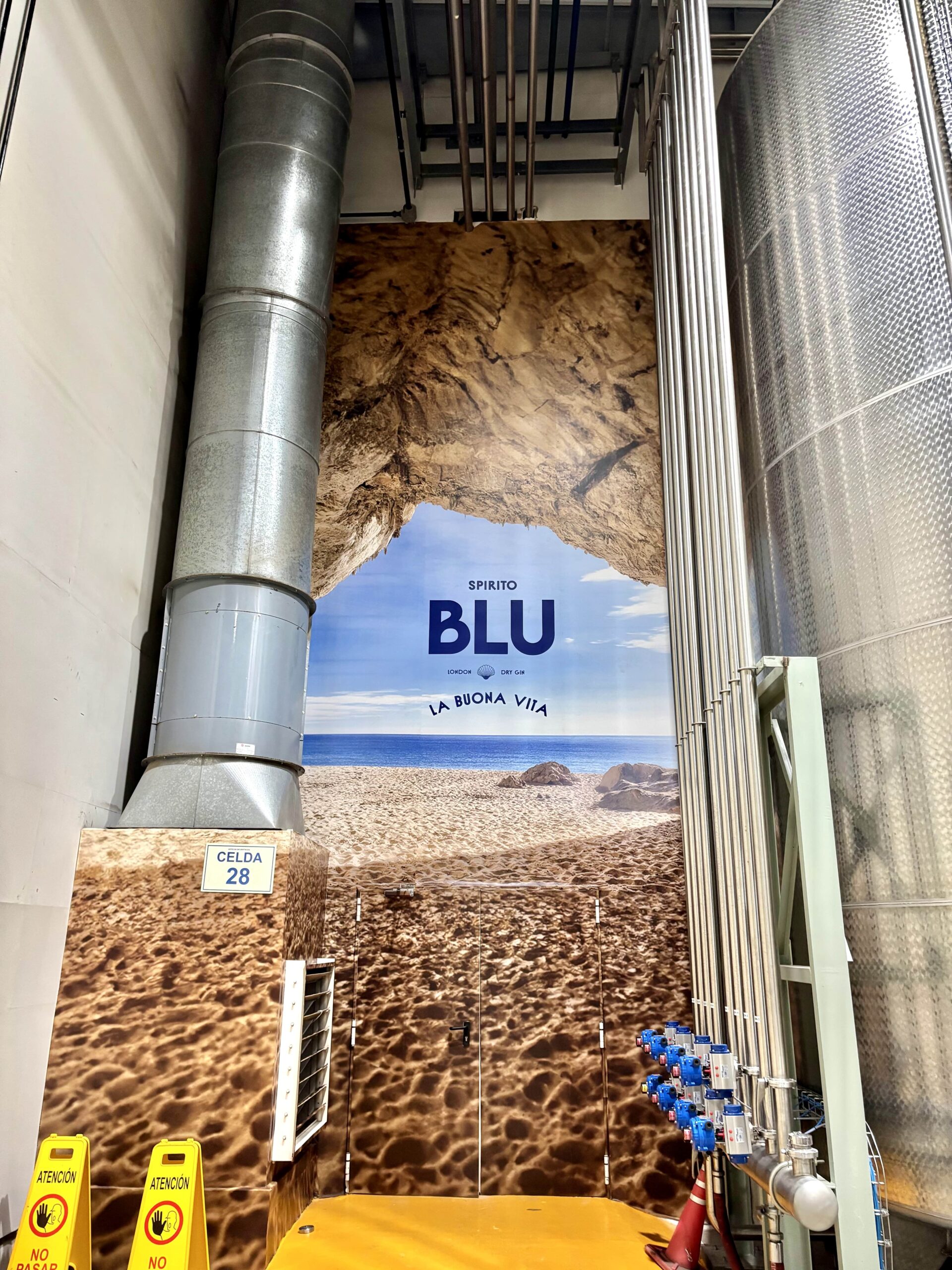 Luego de 2 semanas de reposo allí en grandes tanques de acero para estabilizarlo, al hidratarlo con agua pura le darán el 40% alc. final para embotellar SPIRITO BLU.