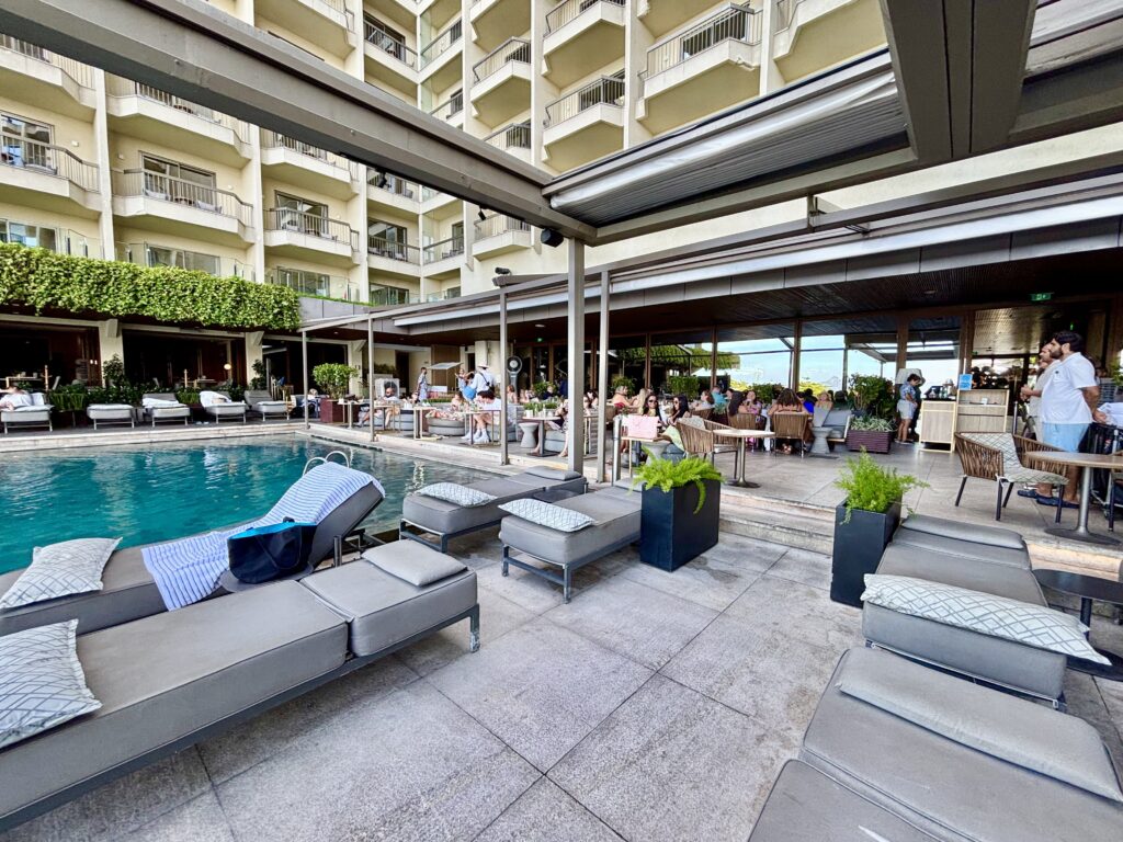 Salón en el piso del Spirit Copa, entre ambas piscinas