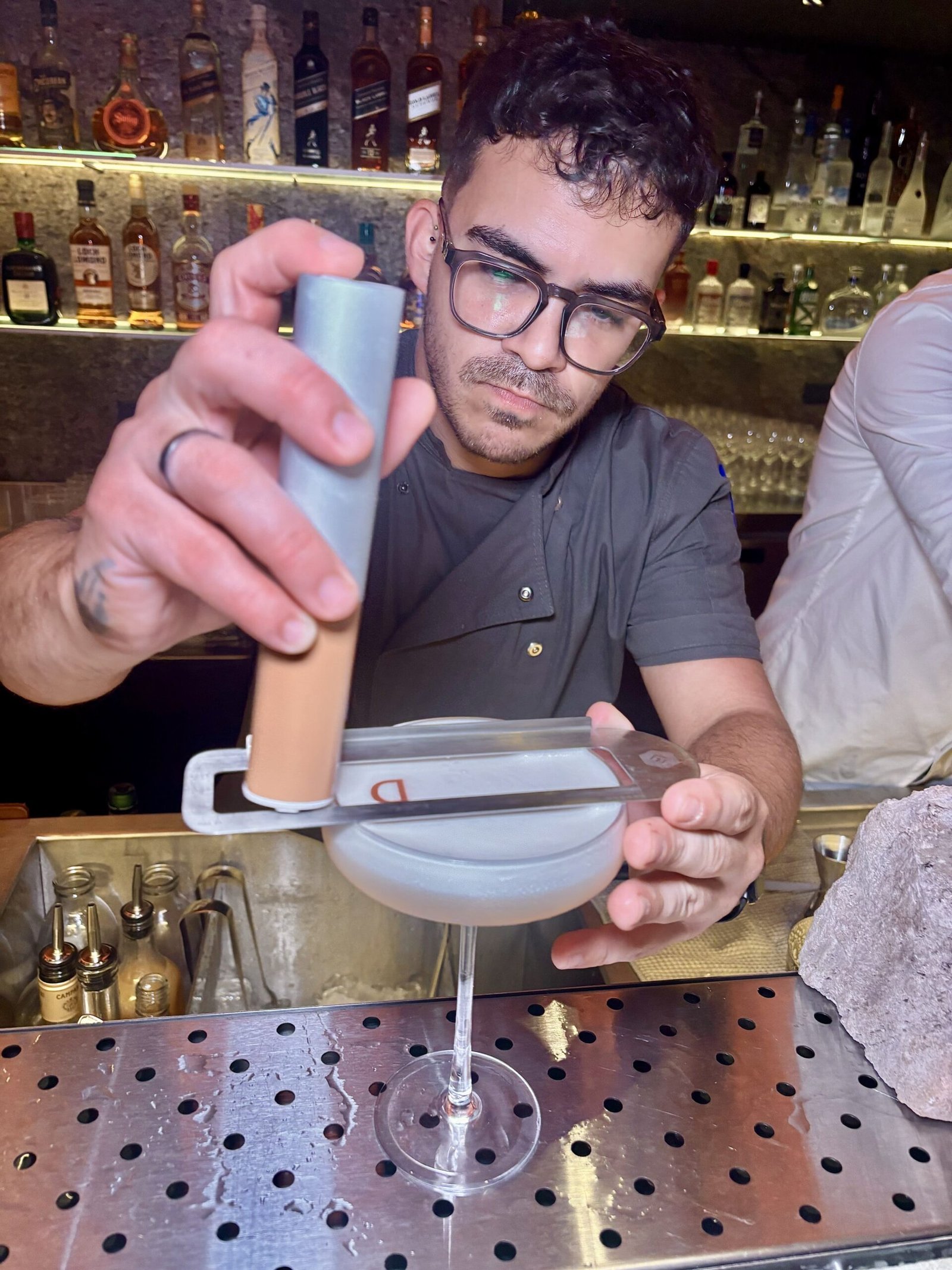 Nuestra experiencia fue una degustación completa de la “colección de autor”, guiada por Bradley Jacobi junto a los bartenders ejecutores Marcos Escobar y Joaquín Provitina, utilizando cristalería y hielos de alto nivel.