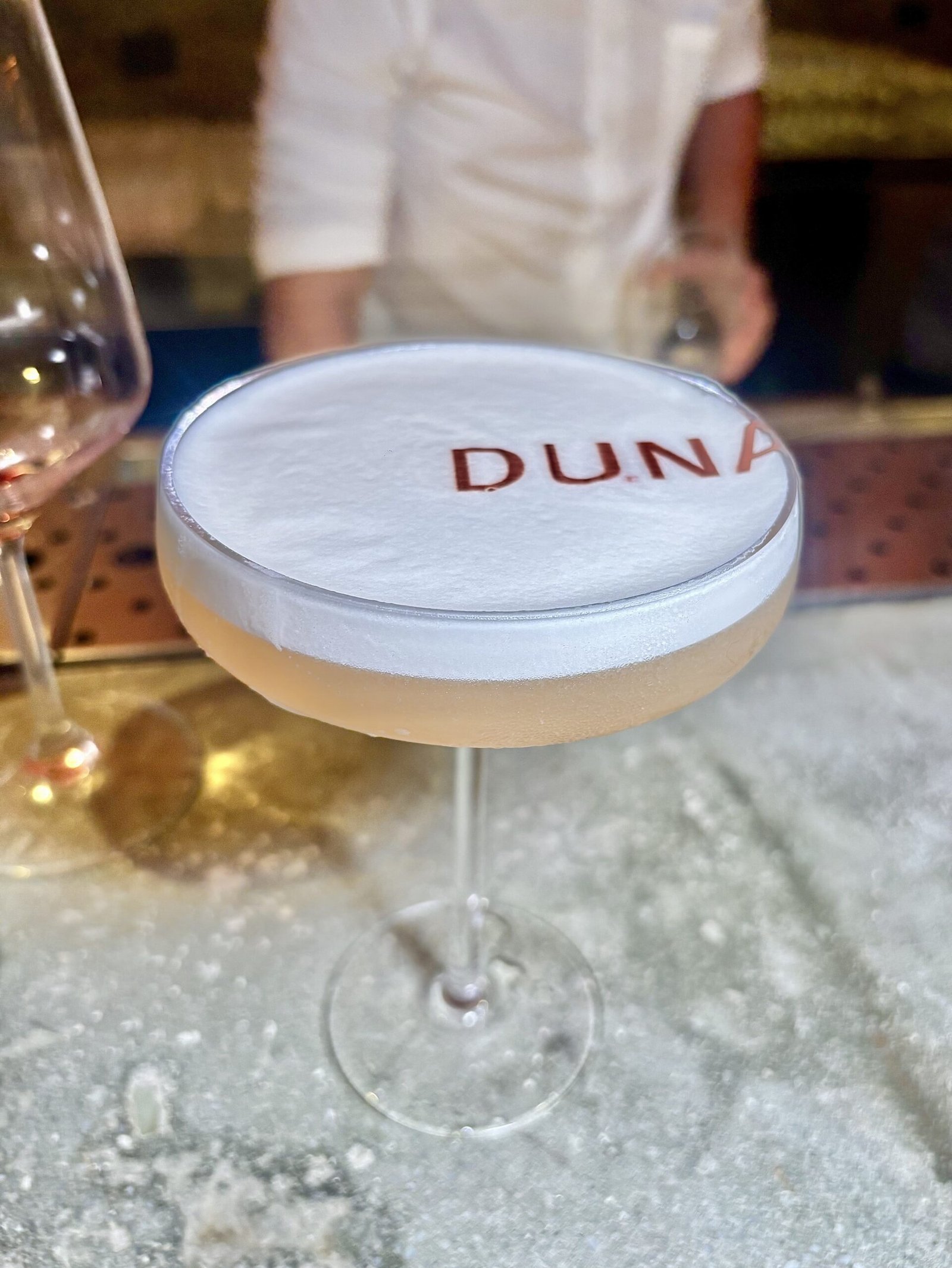 Una reversión del Pisco Sour donde el licor de higos casero aporta dulzor y profundidad, mientras el jerez suma complejidad. Puede funcionar tanto como aperitivo como after dinner. El toque está en el nombre pintado encima de la espuma.