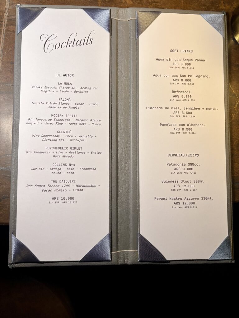 Eso lo tradujeron en una carta de autor compuesta por cócteles de perfil fresco, con fuerte presencia de carbonatación y lógica de volumen. Todos con un precio unificado de $16.000, lo que simplifica la lectura y posiciona la propuesta en un rango competitivo para el nivel de experiencia.