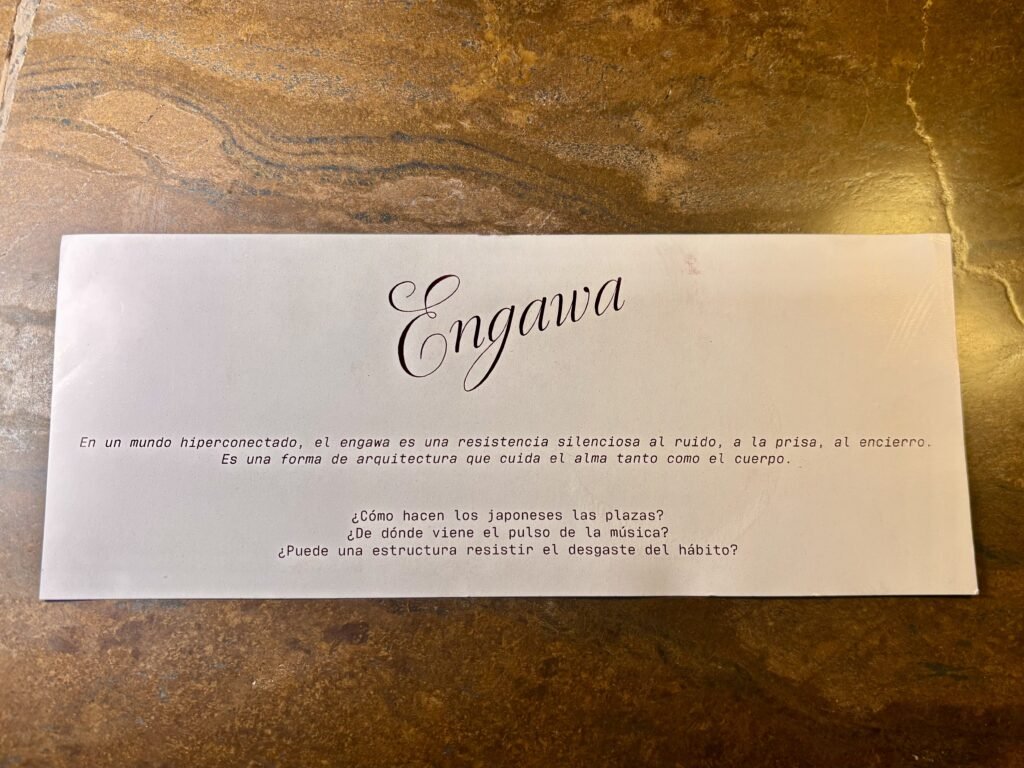 Además de la carta visible, existe otra oculta: ENGAWA. No es un cóctel, sino un concepto. La misma se presenta en un pequeño papel dispuesto en la barra, enigmático y no tan fácil de comprender, porque propone un juego en complicidad con los bartenders.
