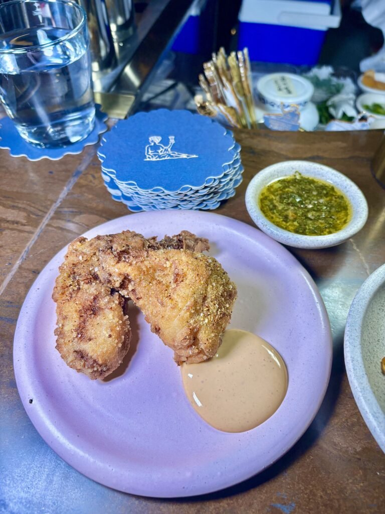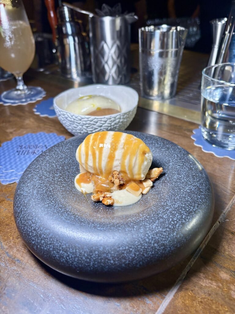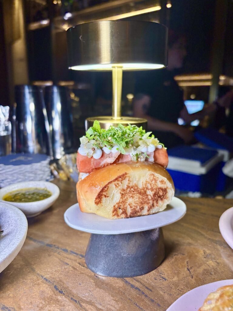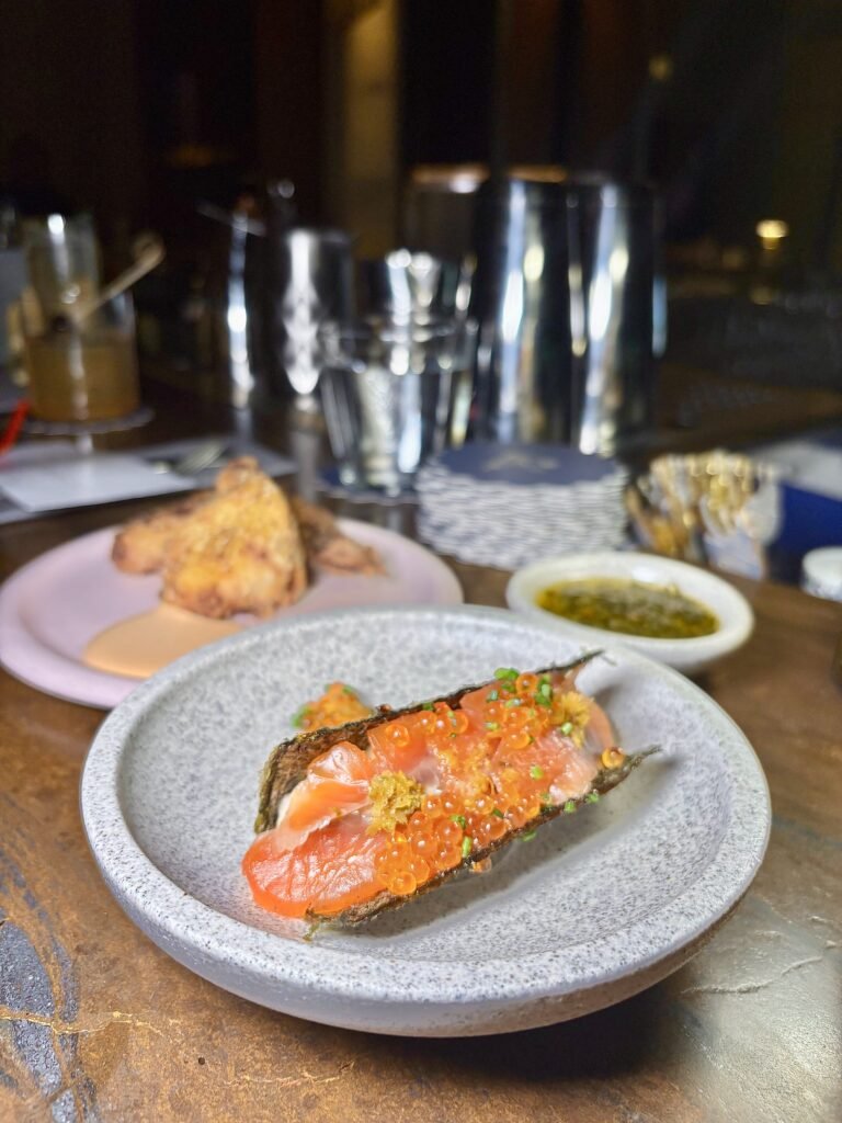 La cocina acompaña con inteligencia. No busca protagonismo excesivo, pero sí sorprende. Ahí aparece el trabajo de MAXIMILIANO MATSUMOTO, destacado chef con paso por la cocina de Tegui (del mediático Germán Martitegui, jurado de MasterChef) y por Uruguay. Hijo de familia japonesa y con una identidad que cruza técnica, producto local y guiños asiáticos, Maxi da un enfoque claro: platillos accesibles, directos pero con profundidad, pensados para acompañar la experiencia del bar sin sobrecargarla.