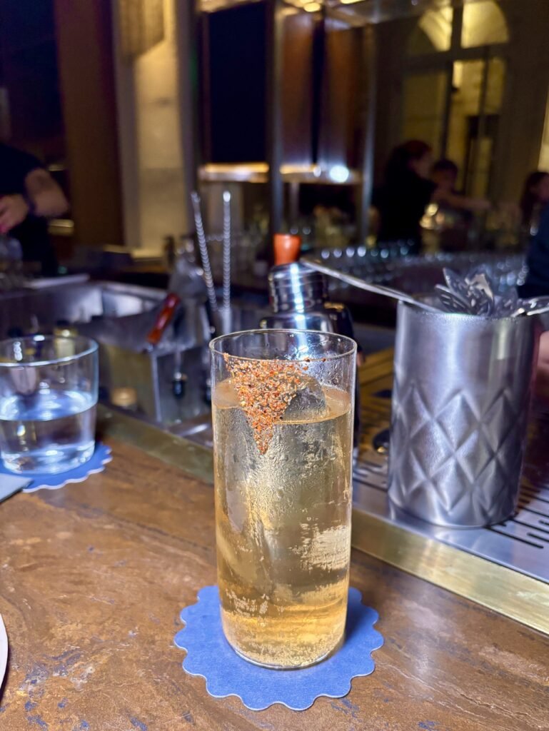 Clarificado, preciso, con una burbuja fina que sostiene la estructura. Desde la barra lo identifican como uno de los que mejor puede funcionar en volumen: accesible, fresco y con capas de sabor. Con gomita de lima limón como garnish comestible.