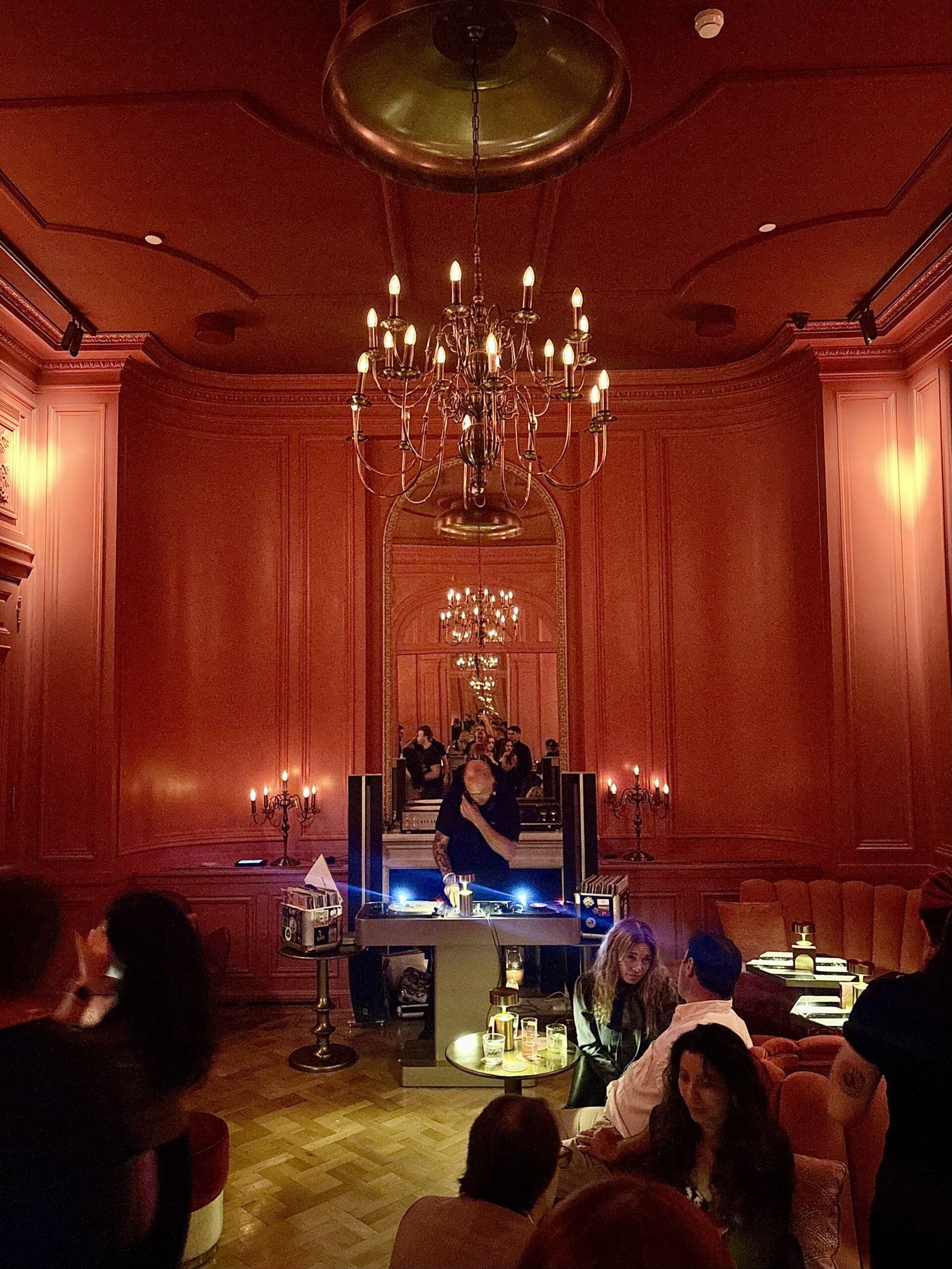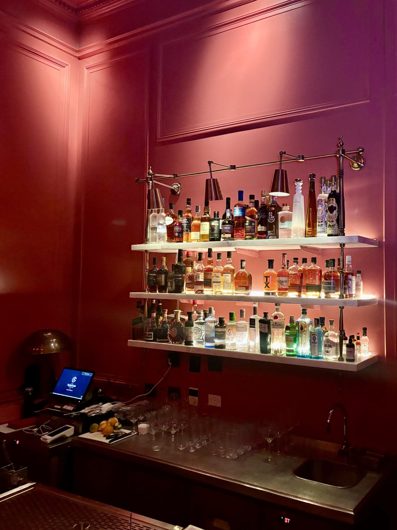 La recién estrenada barra de Mihura no es una sola. Se trata de una antesala bautizada THE PARLOR –“el diálogo”– donde se inicia la experiencia, y detrás, atravesando unas centenarias puertas, un espacio colindero bautizado “THE SERPENT CLUB”. Dentro se aprecia una pequeña sala tipo nightclub, con iluminación baja y toda en rojo, mesas bajas para grupos, una barra más pequeña, una araña central imponente, música en vivo con DJ y una acústica muy cuidada para el nivel de volumen. Dos caras de un mismo Bar.