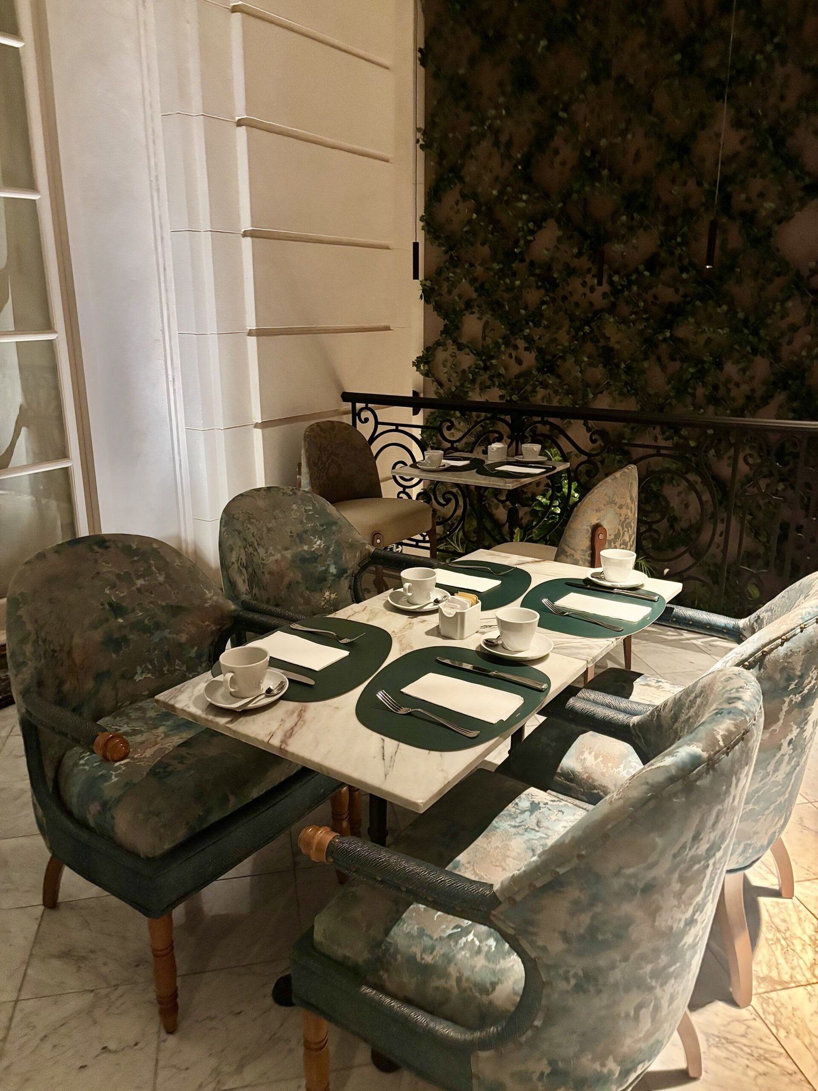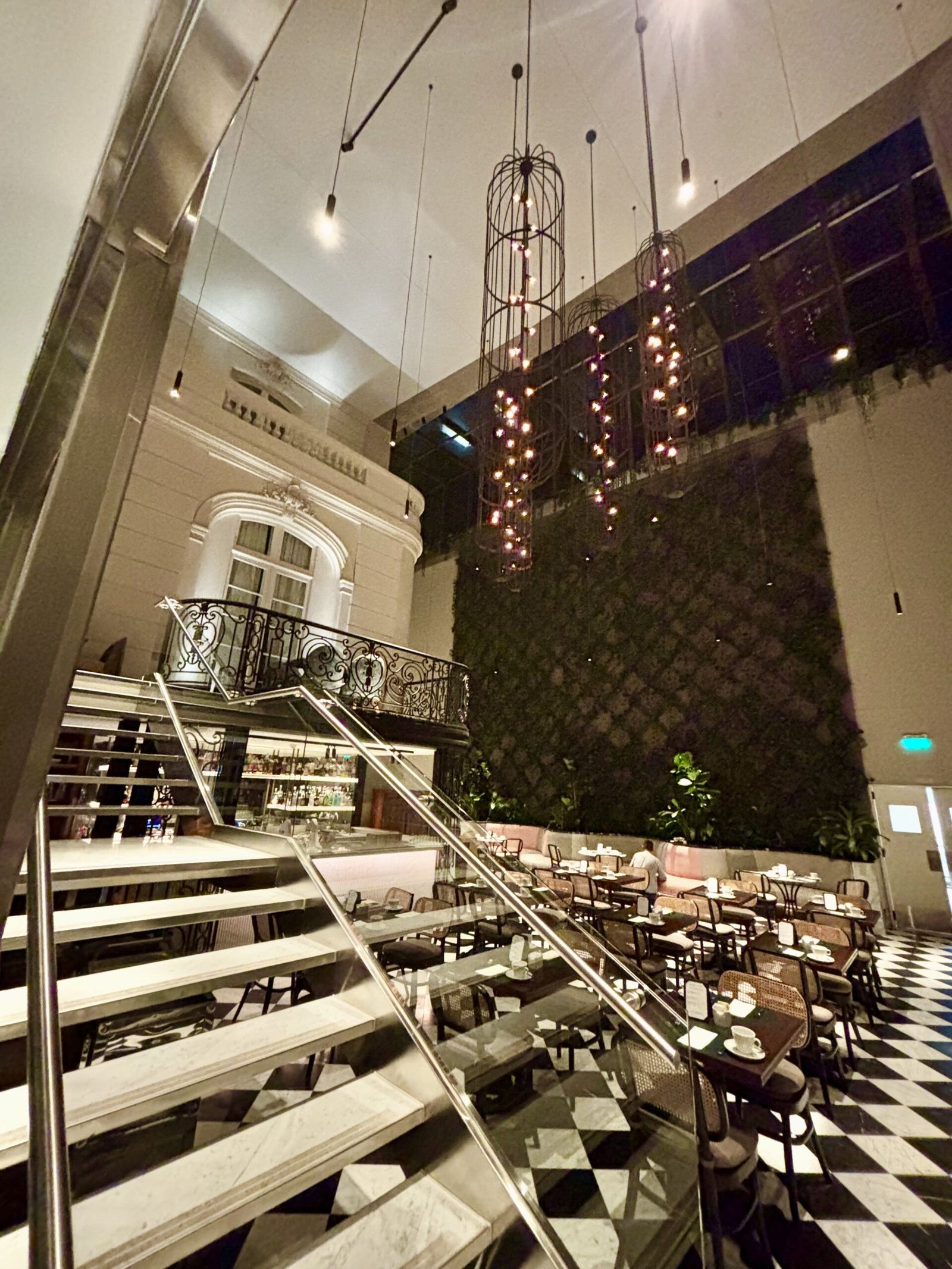 La experiencia comienza incluso antes de sentarse. De la mano de la talentosa y simpática jefa de barra GUILLERMINA USQUEDA recorrimos gran parte de la mansión. “Existía la parte del hotel con una torre. Luego, después de un proyecto arquitectónico muy grande, la familia propietaria compra toda esta mansión histórica que pertenecía a la familia Mihura, luego vendido a la familia Anchorena. Se había edificado en 1920 con la mejor fachada, pero en un momento entró en un estado de abandono. Y es ahí donde Ian Kupchik la compra, hace unos 10 años y comenzó a hacerse un trabajo de puesta en valor larguísimo”, nos relató en exclusiva Guillermina.