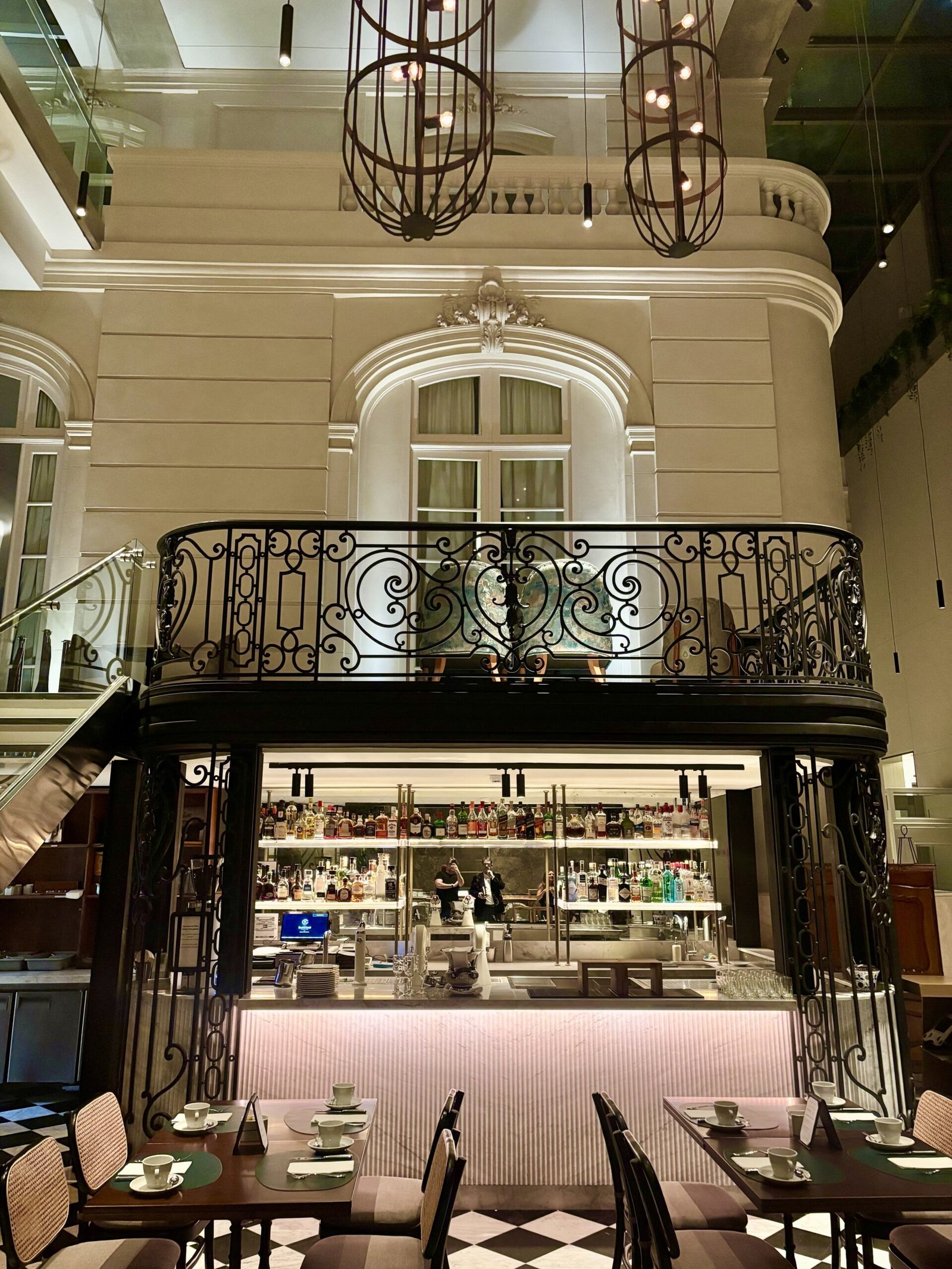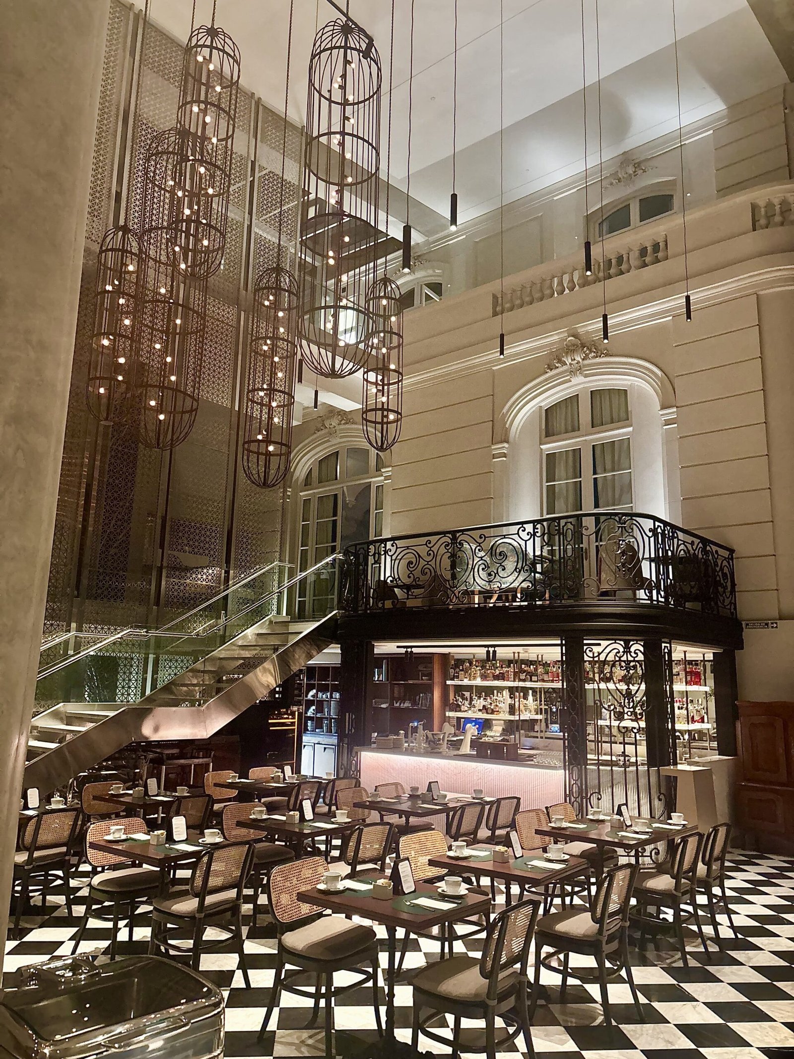 Este espacio en la planta alta, tiene una balconada de hierro forjado, de ensueño, que pinta la maravilla arquitectónica del centenario edificio. La misma da hacia THE ATRIUM, un patio interno con luz natural, barra propia, siendo un espacio amplio que con versatilidad ofrecen desayunos para huéspedes, como eventos y activaciones.