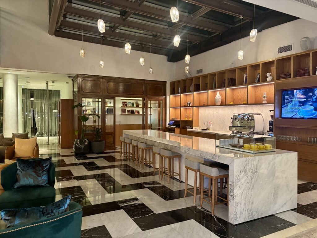 Guillermina Usqueda por último, nos hizo conocer también sectores del hotel, que conecta directo en la mitad de la extensión, con la mansión. La planta baja del Recoleta Grand cuenta con un lobby bar estilo cafetería llamado “Café de Prensa At Recoleta Grand”, con varios espacios para eventos corporativos y áreas de circulación amplias que conectan naturalmente con la propuesta gastronómica.