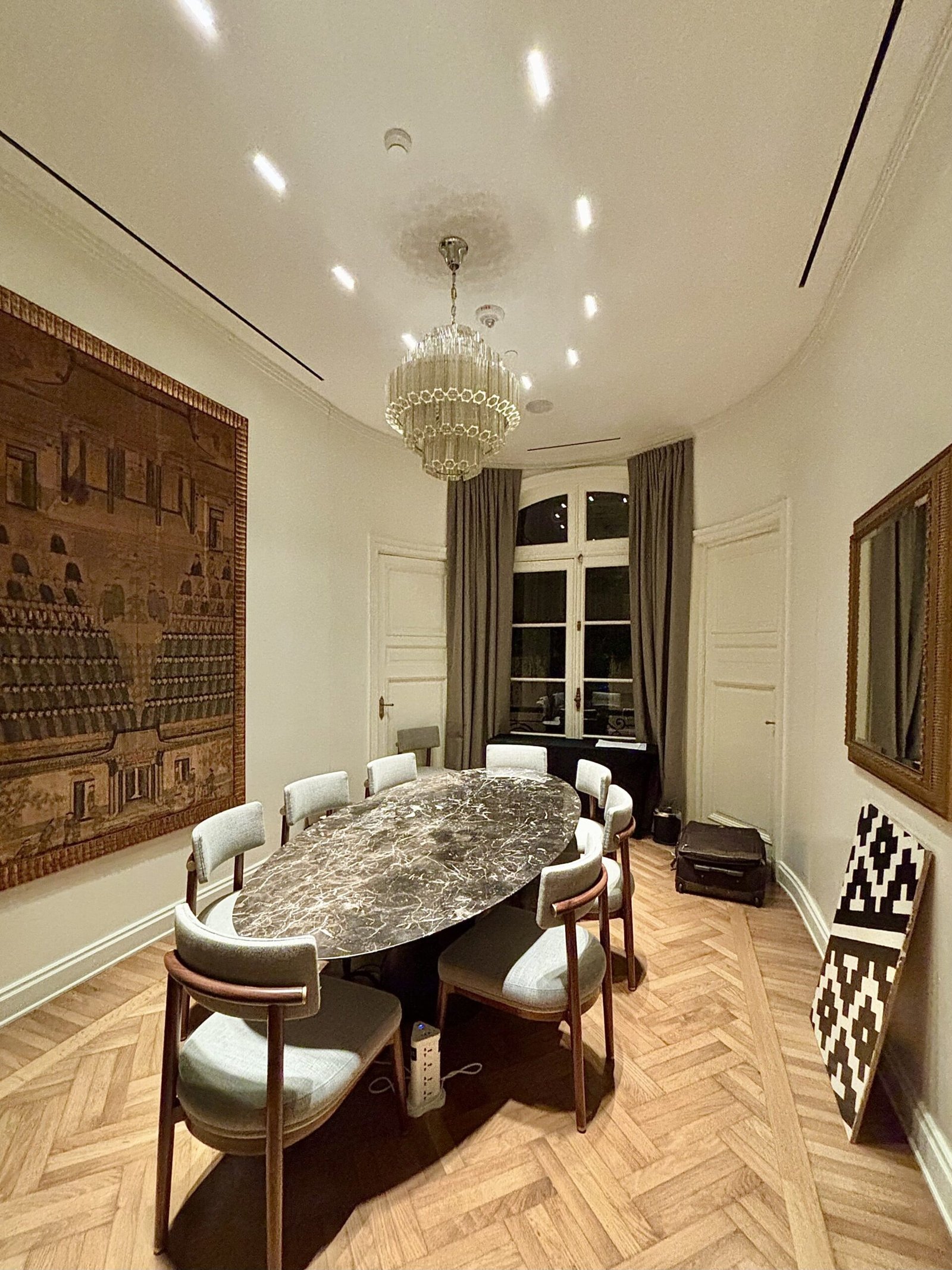 En Buenos Aires se adaptó a casonas urbanas de gran escala como esta, con fachadas simétricas, molduras, cornisas y ornamentación clásica, aberturas altas y proporciones monumentales y escaleras importantes, muchas veces en mármol. Pero sobre todo, la actual entrada era una para carruajes, y luego autos tempranos, que va a desembocar en un patio interno, donde realizaron el evento lanzamiento el jueves 26/marzo.