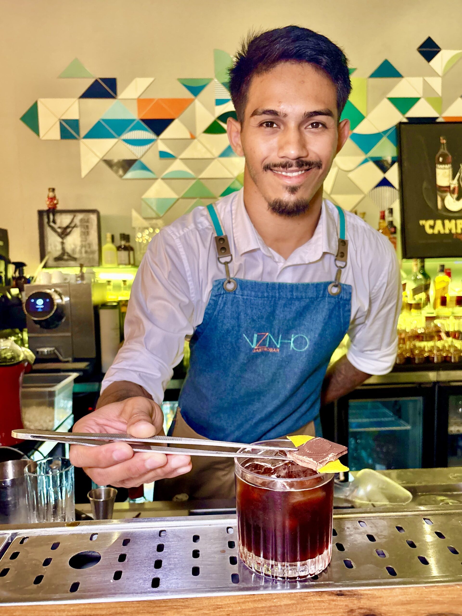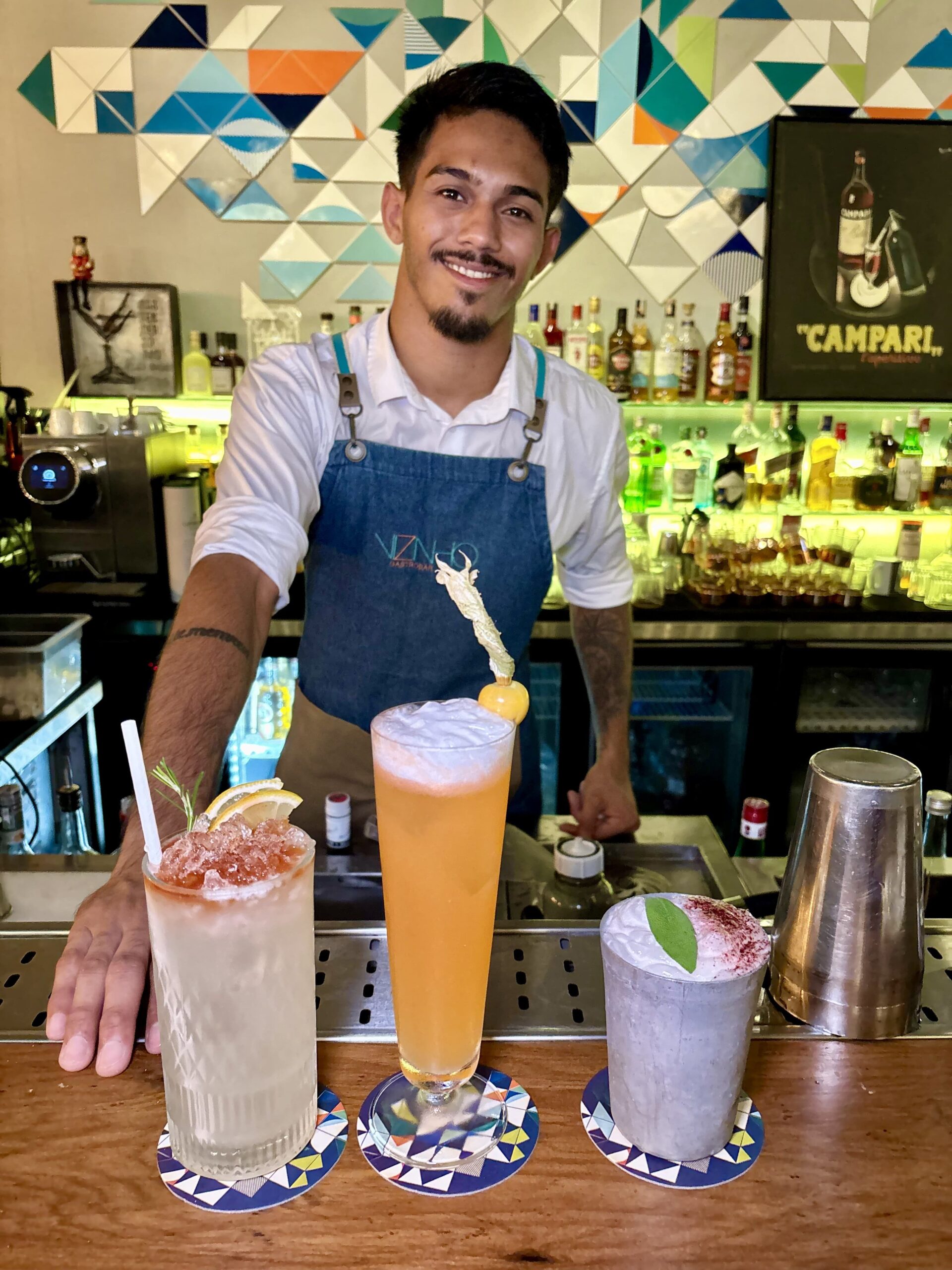 PAULO ROGÉRIO (27) es el simpático Bartender jefe de barra desde la apertura, quien nos preparó 3 tandas de cocteles, de los cuales nos gustó este:
