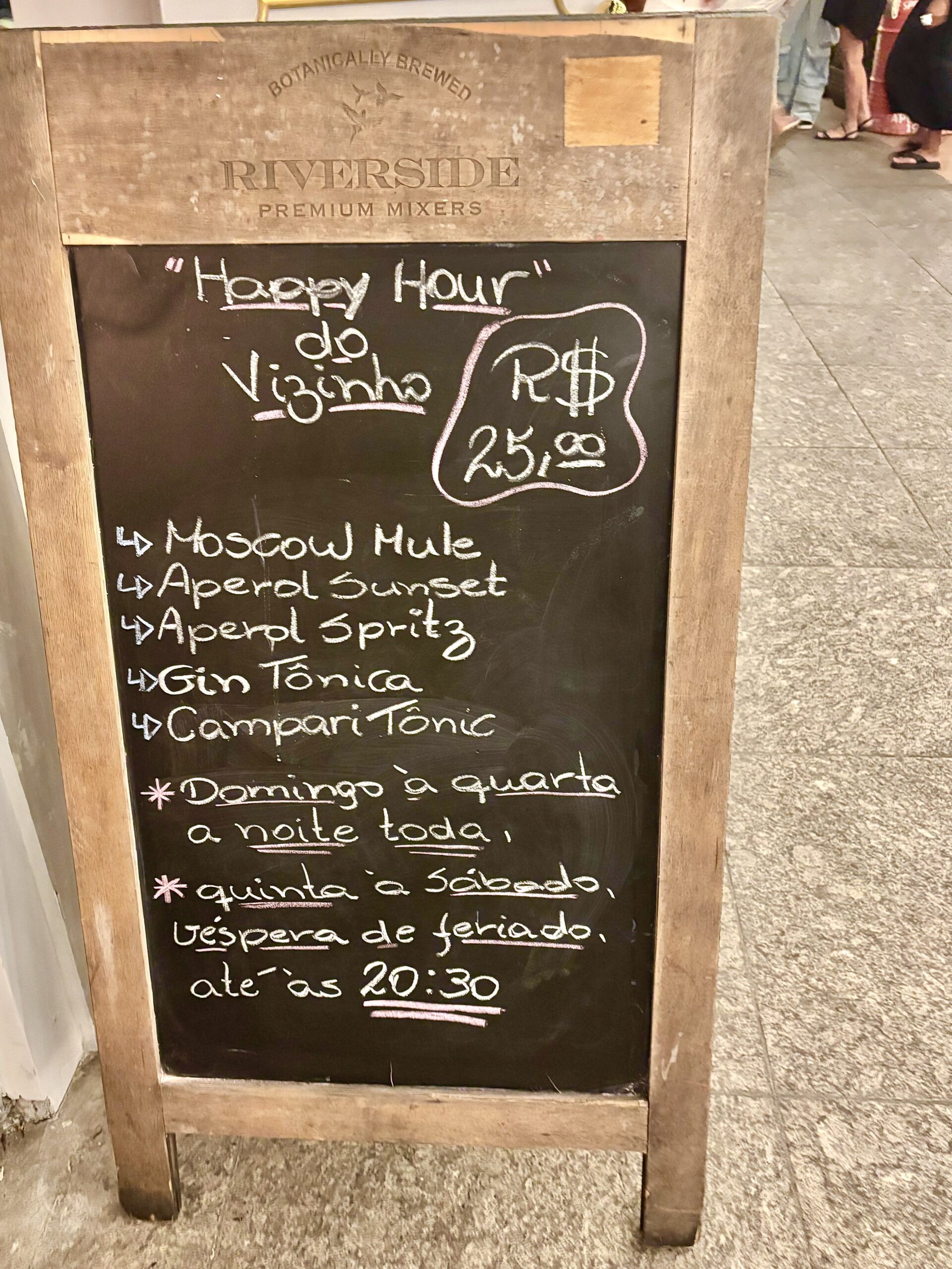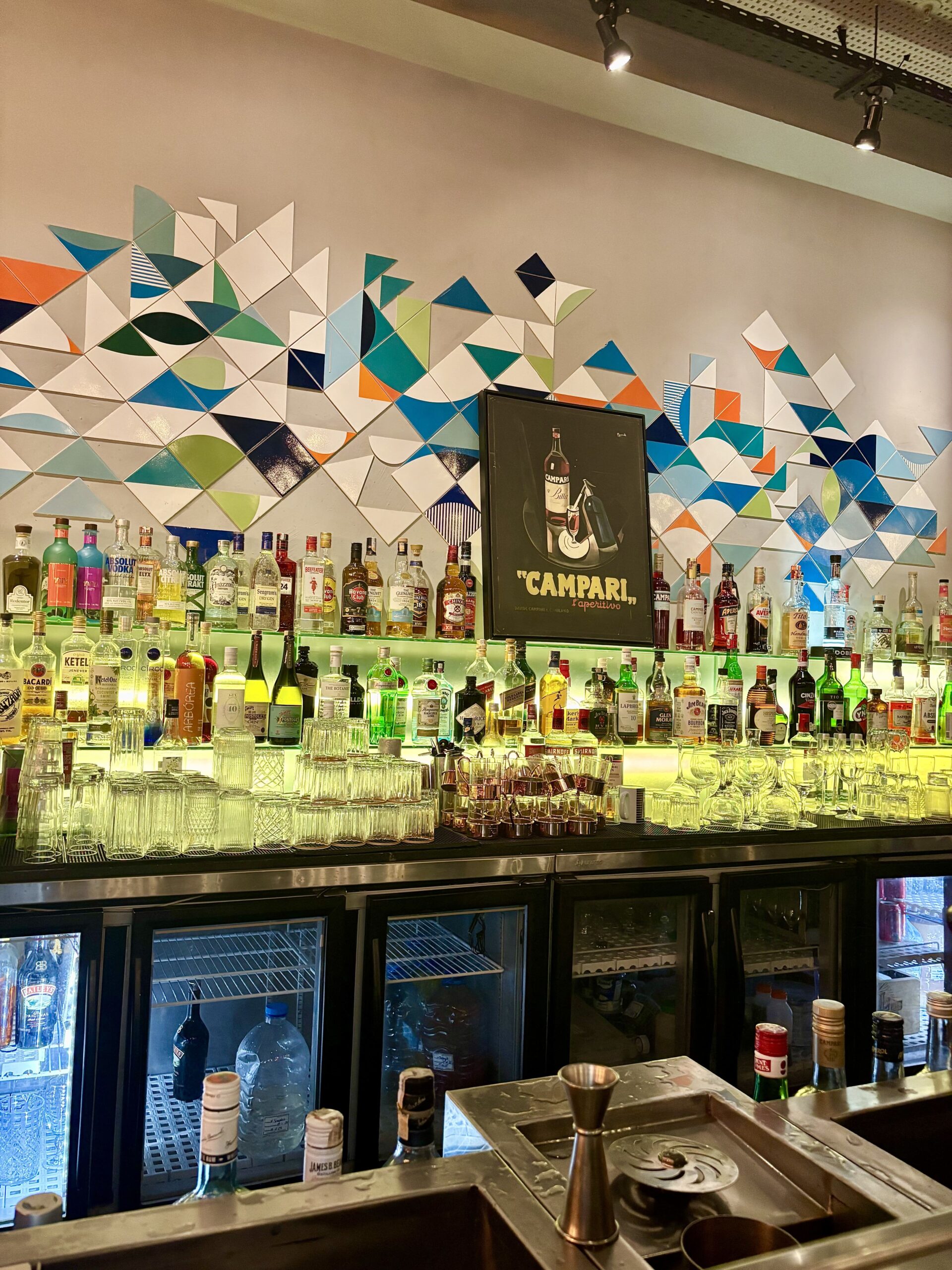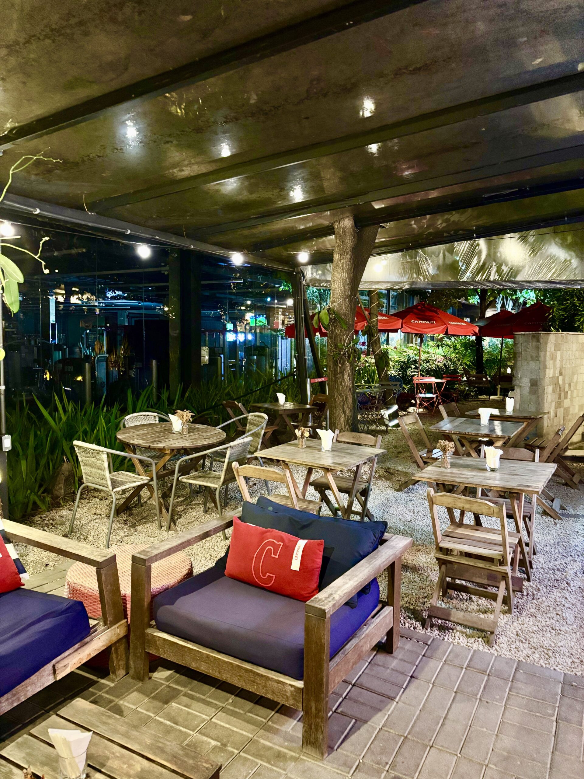 En todo el bar no sorprende la gran visibilidad de CAMPARI, la marca de bebidas que más presencia vimos en las giras de bares por RIO, con varios soportes aportando a la estética de lugares con botellones de 6 lts., cuadros, neones, cojines para sofás, etc.