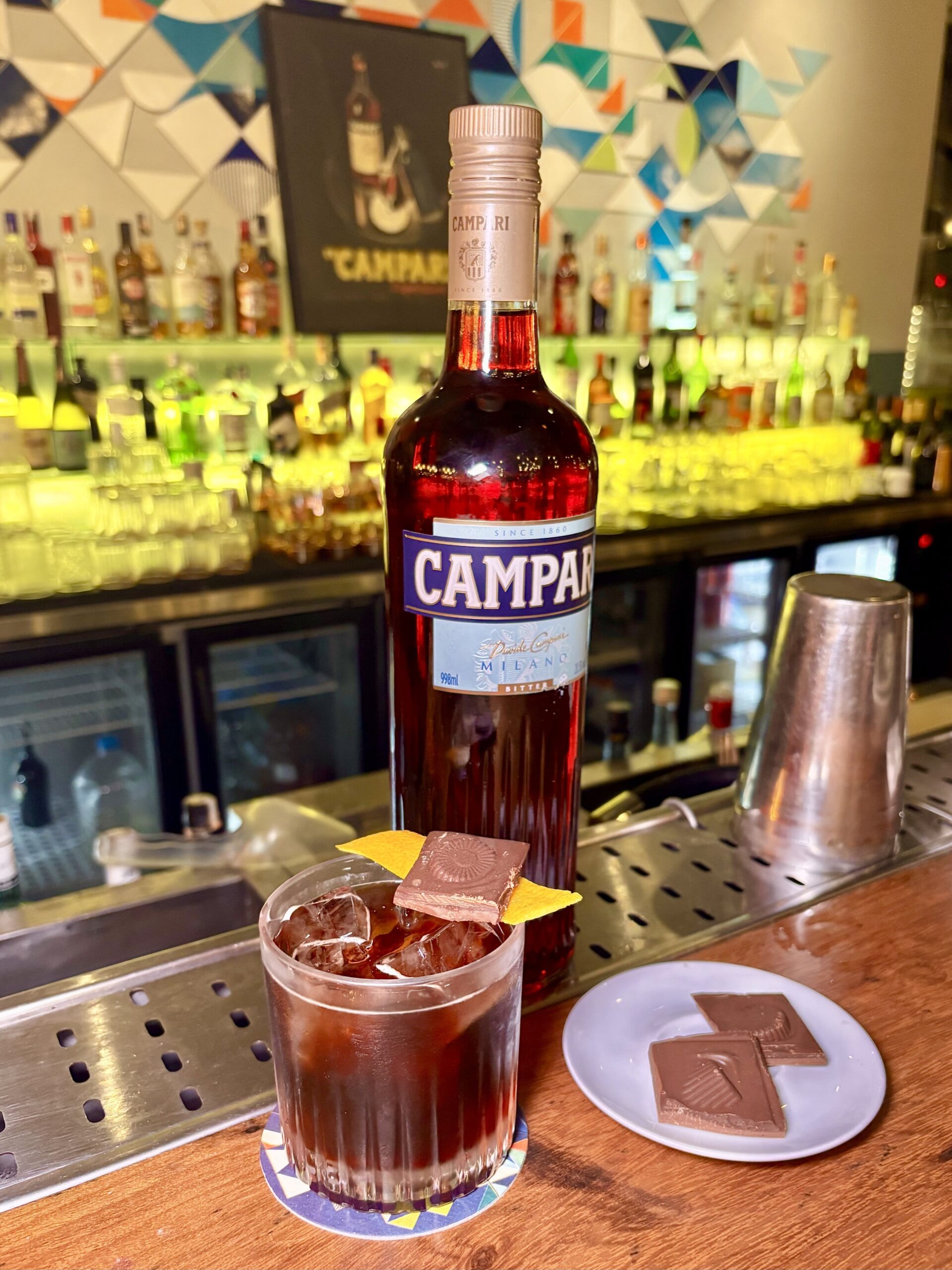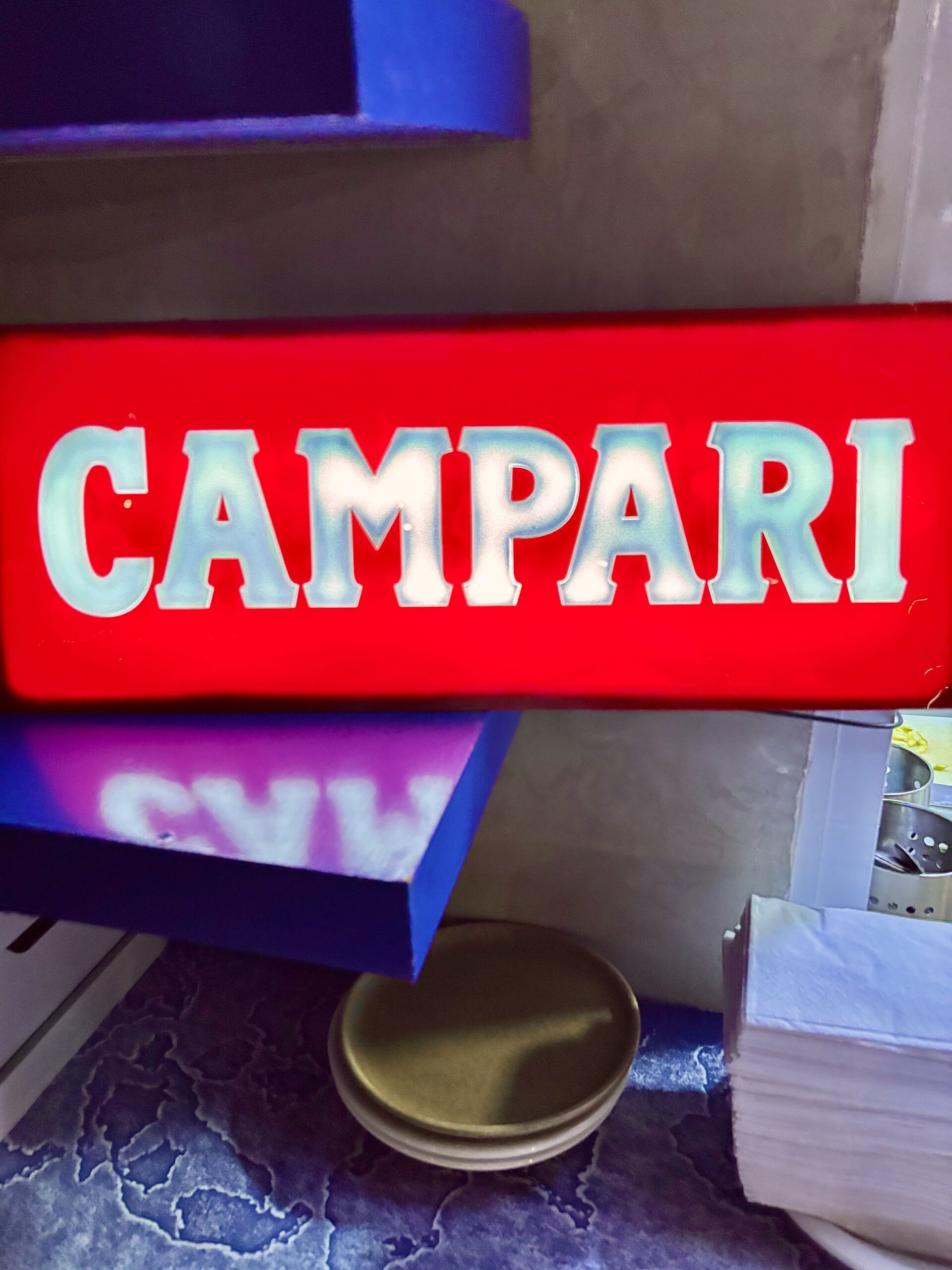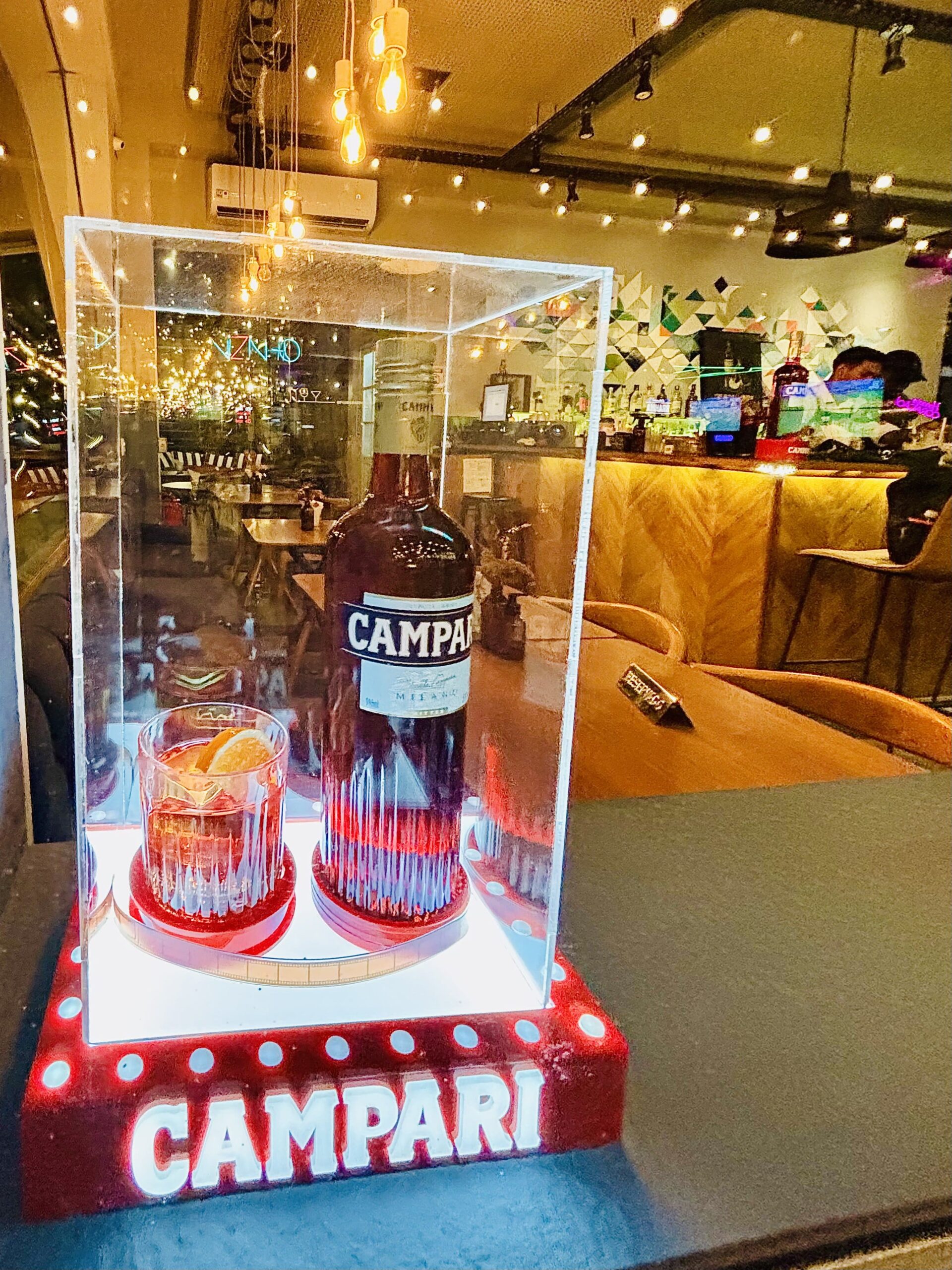 Las 3 opciones de Negronis de autor nos encantaron! Algo esperable viendo a Campari tan fuerte aquí, con un hermoso neón rojiblanco: Não existe Negroni sem Campari”.