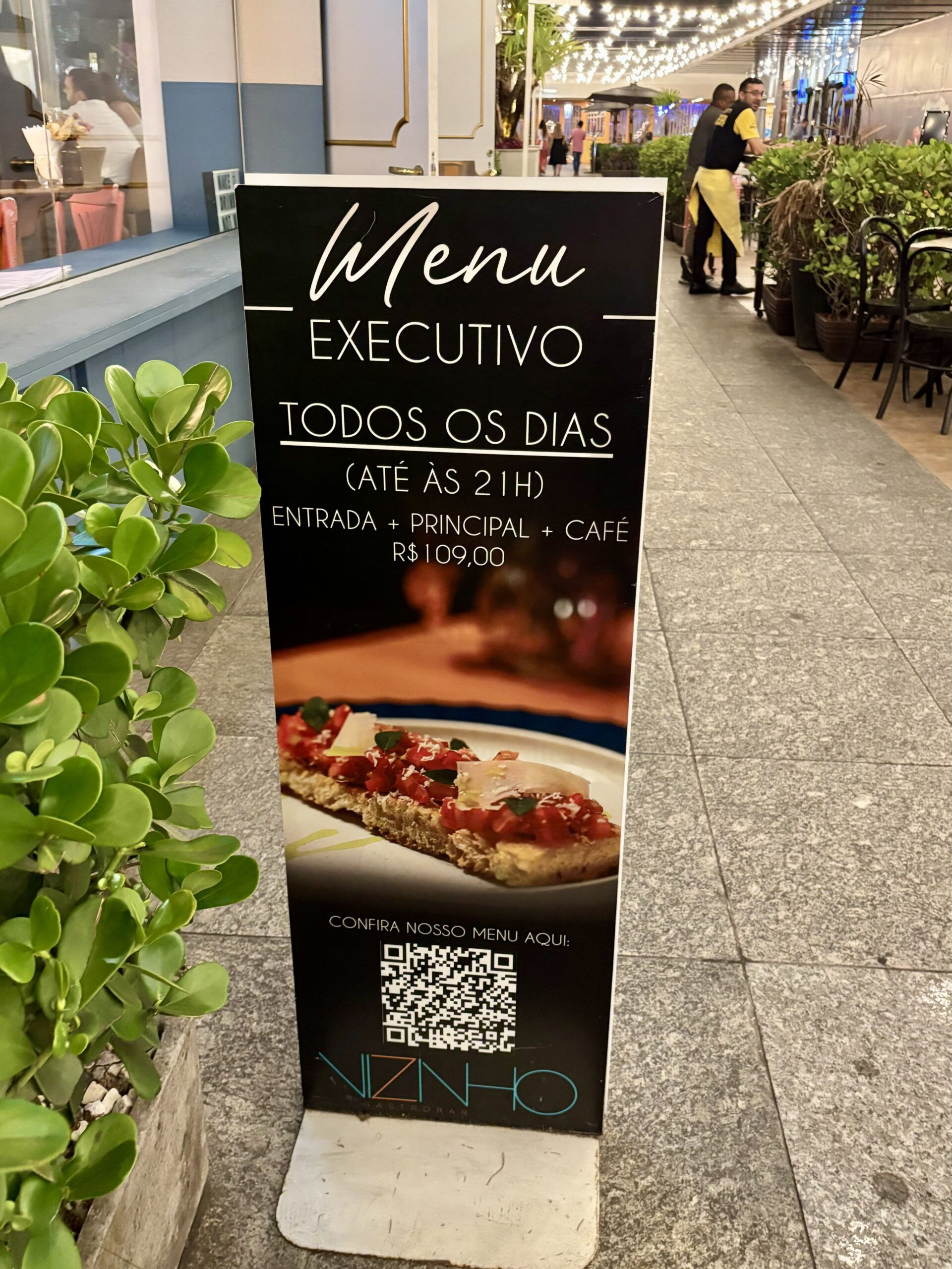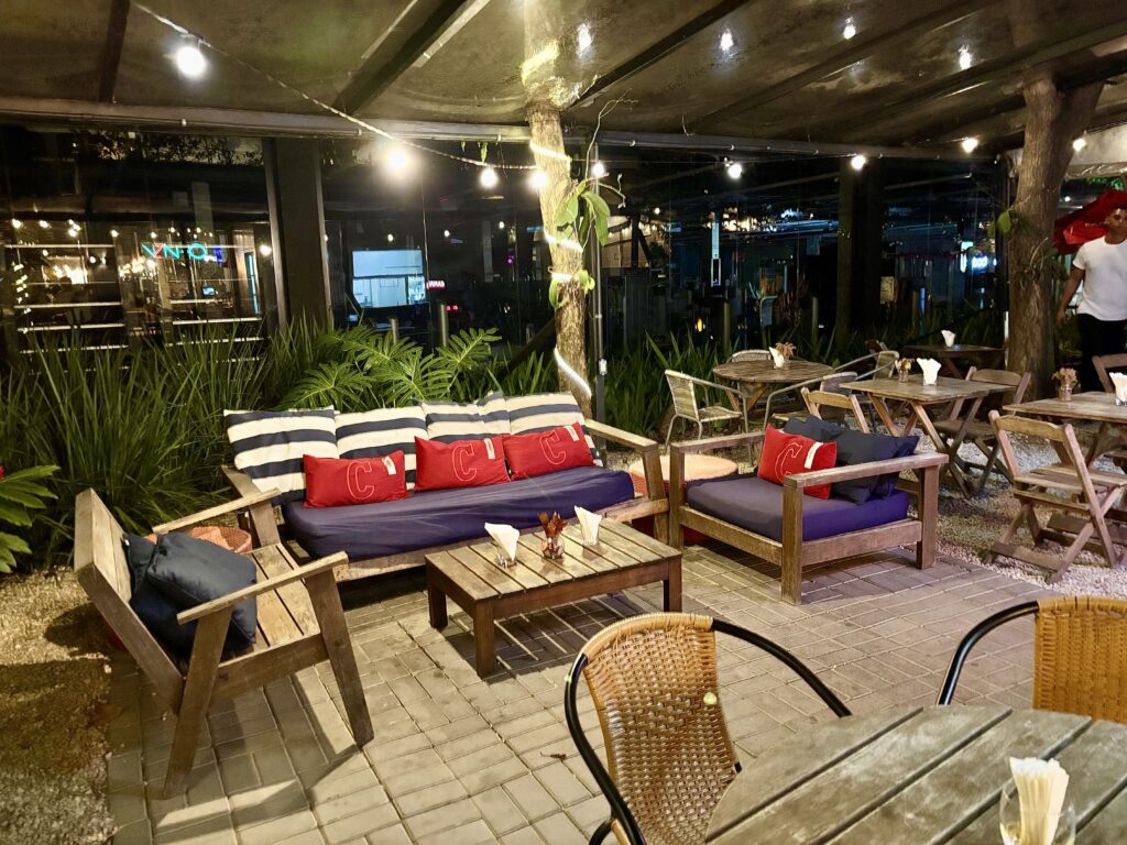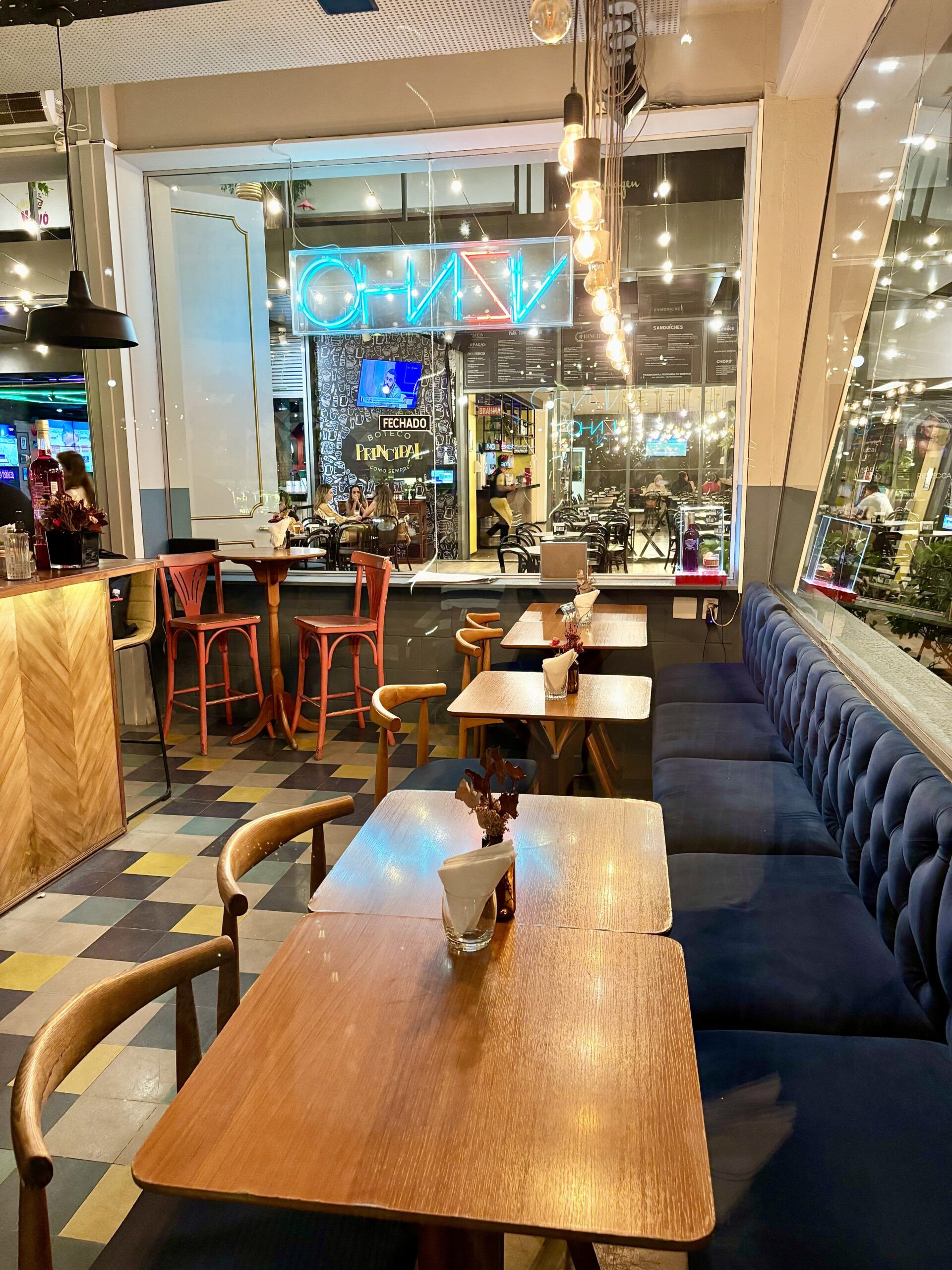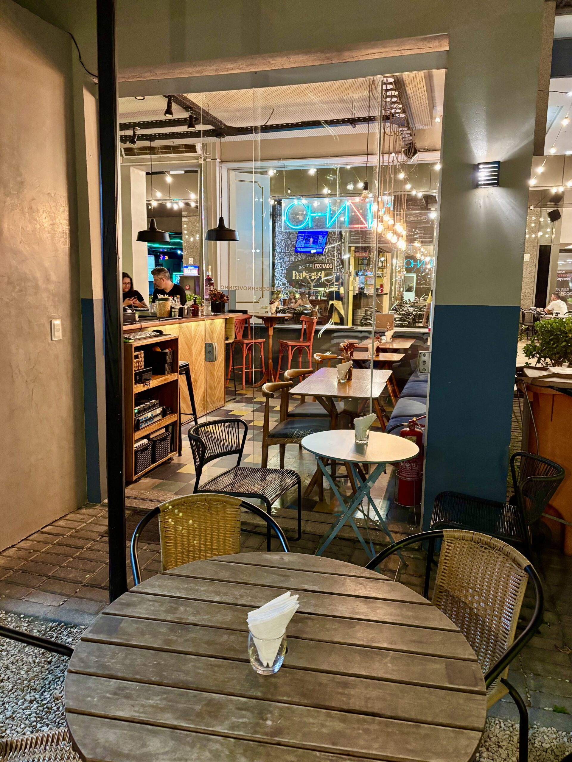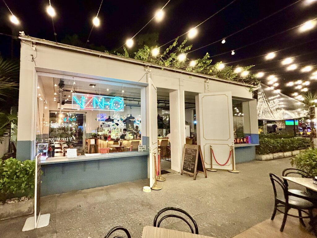 El shopping tiene un sector semicubierto de buenos y variados restaurantes con reconocidos chefs, siendo la propuesta más coctelera desde 2017: VIZINHO. Decorado con estilo playero, ameno, es tan cálido que el nombre está bien puesto: “Vizinho” o Vecino en portugués, remitiendo a la cercanía buscada y lograda con el público.