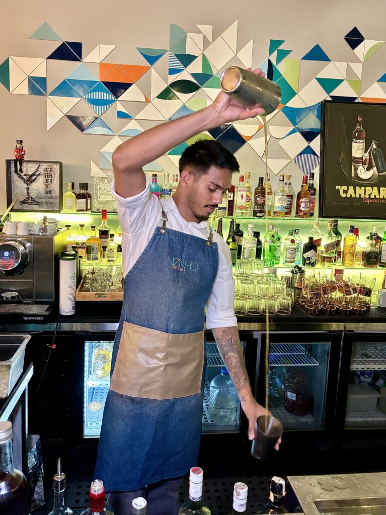 Jéssica Sánchez (33) es la bartender “mixologista” como le dicen en Brasil, creadora de las cartas de bebidas de 3 restaurantes del shopping al inaugurar, mientras que se quedó con Vizinho como propio. Paulista iniciada en 2008 en un restaurante de São Paulo como sommelier, donde se capacitó en coctelería, siguió en The Sailor Pub, que estaba bajo el mando de Talita Simões, una reconocida bartender años atrás.