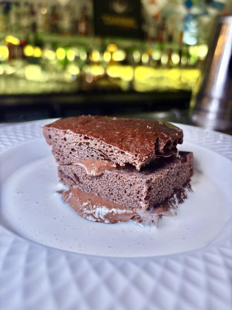 De ambos postres disponibles, probamos primero el BROWNOFFEE . Como una torta clásica con base de brownie, dulce de leche casero, banana y chantilly, pero con forma de alfajor (26 R$-5u$s).
