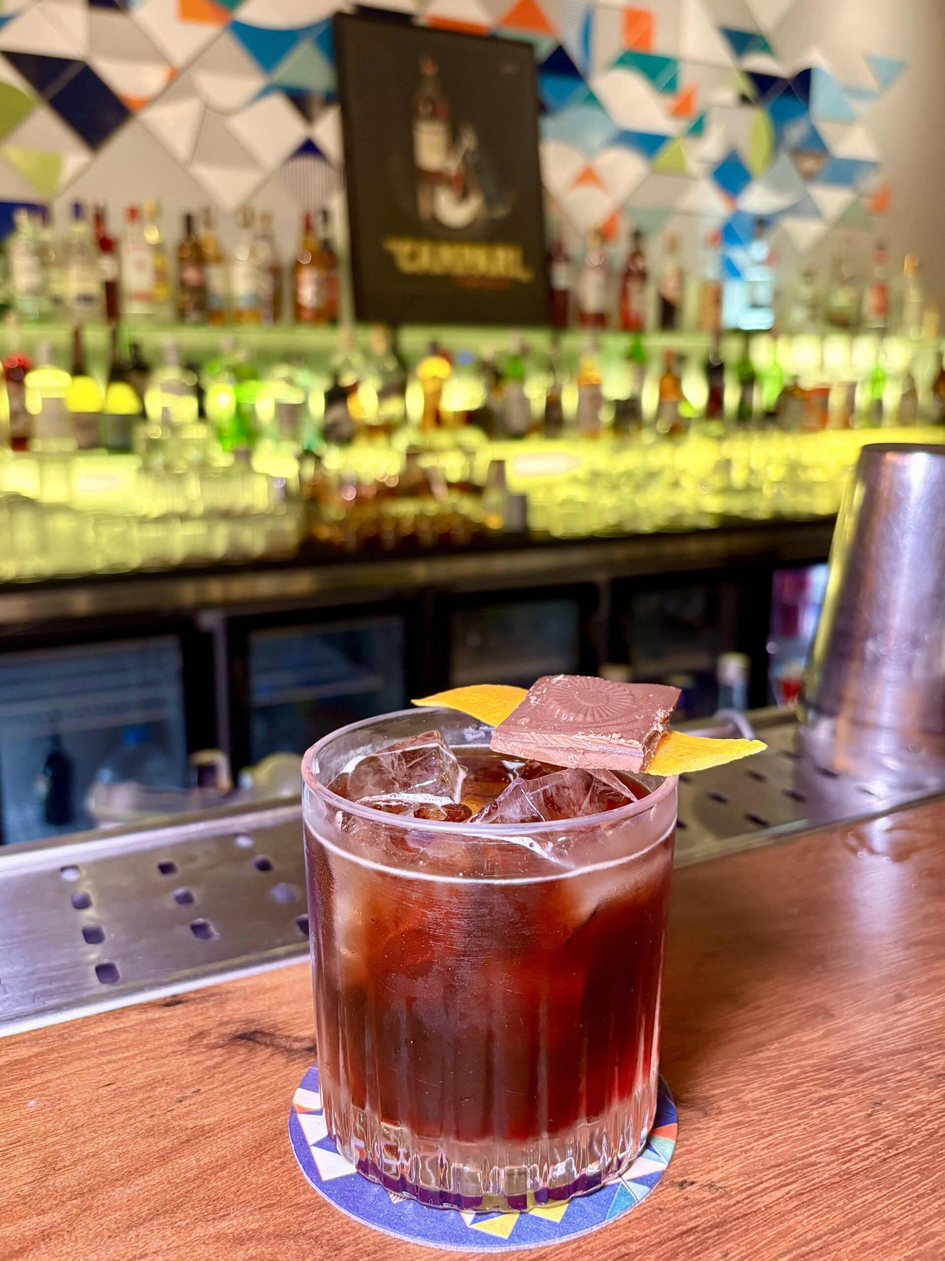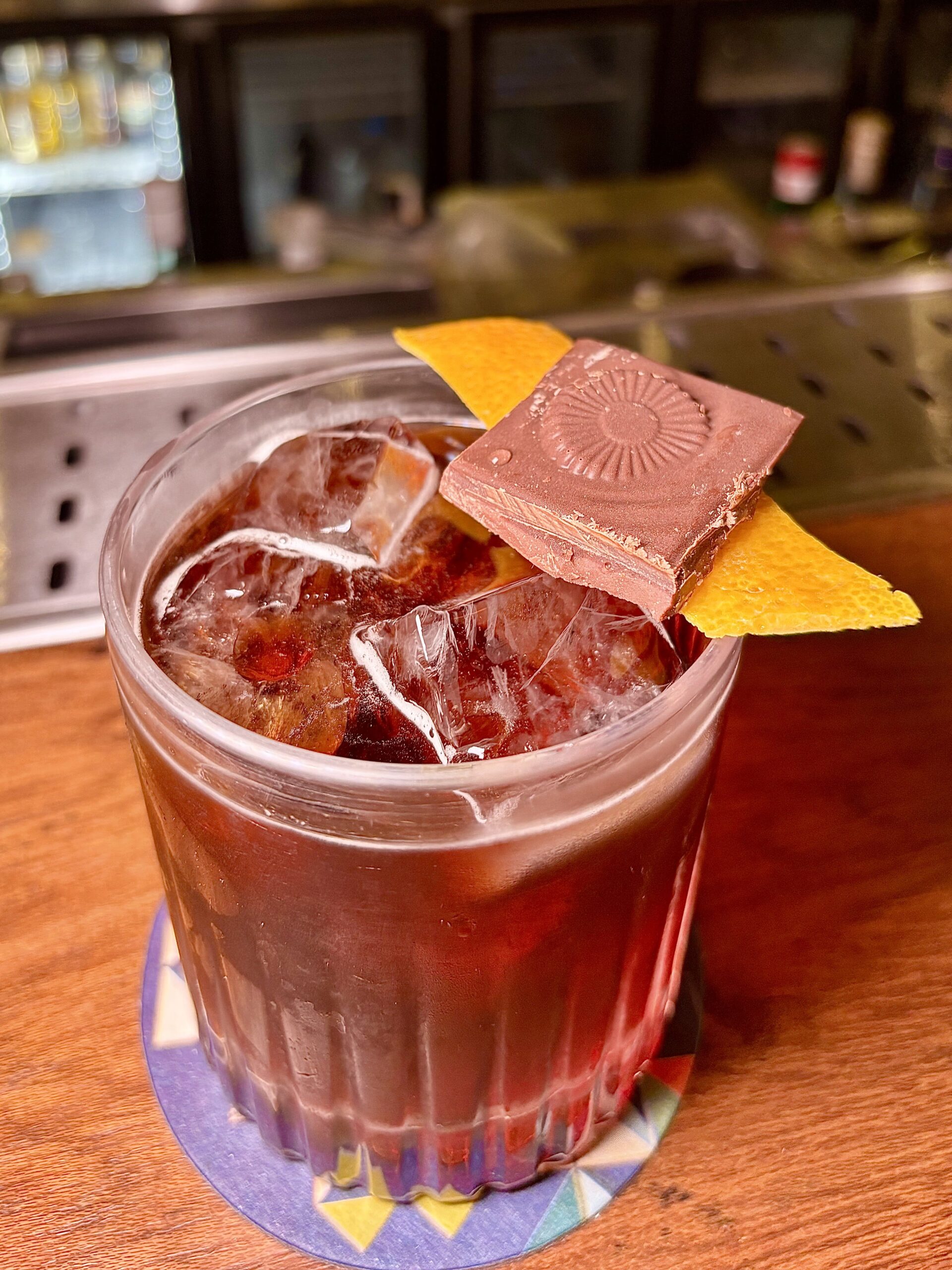 – COFFEE NEGRONI, con la tradicional receta pero al Gin lo infusionan con granos de café por 12 hs y filtrado, más un chocolate como garnish. Delicioso y obvio para después de comer. (Todos a 42 R$- 8u$s).